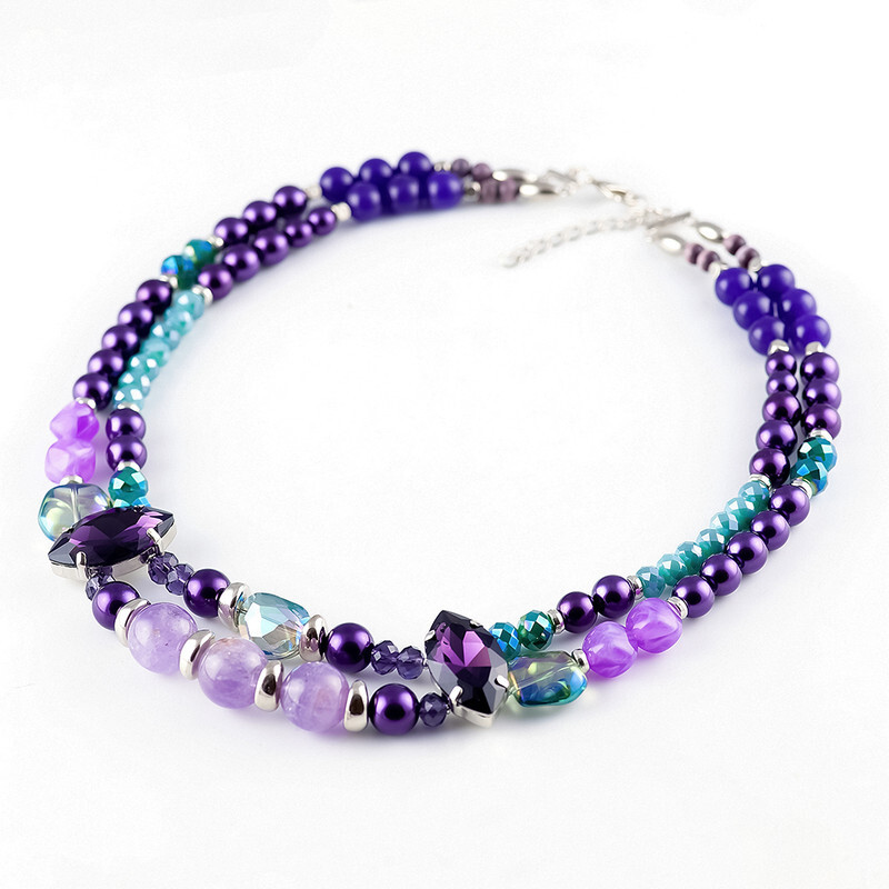 Аметист, кошачий глаз, хрустальное стекло, жемчуг Majorca, латунь. Гальваническое покрытие: родий.