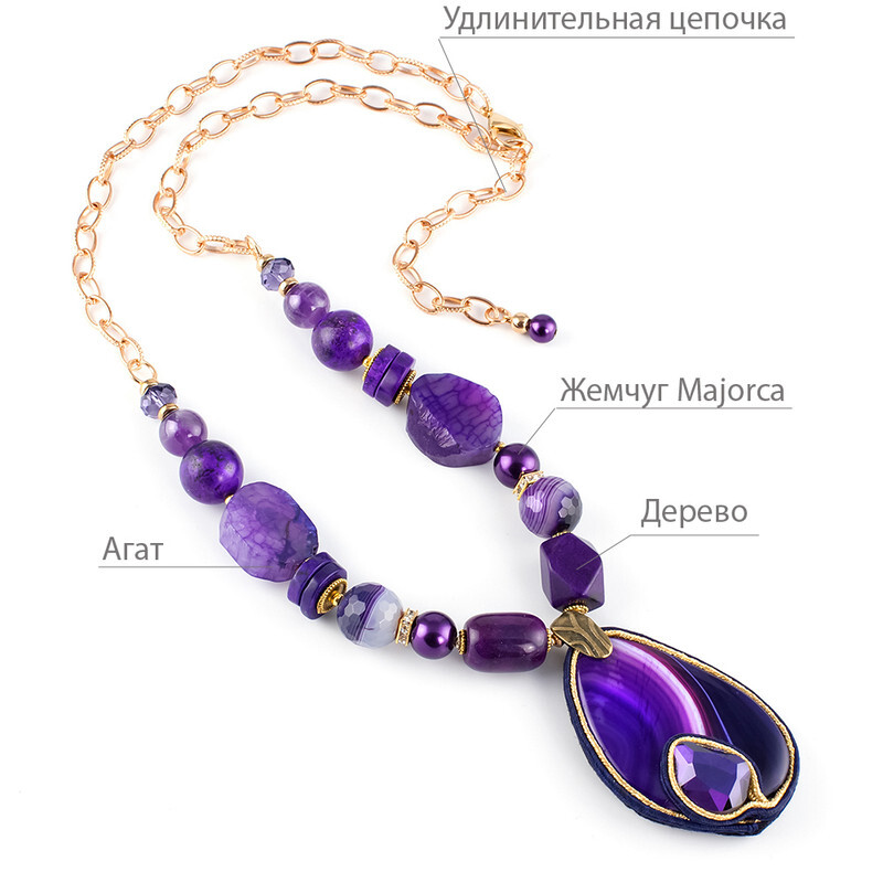 Удлинительная цепочка поможет скорректировать размер посадки. Длина колье 70-75 см длина кулона 7 см