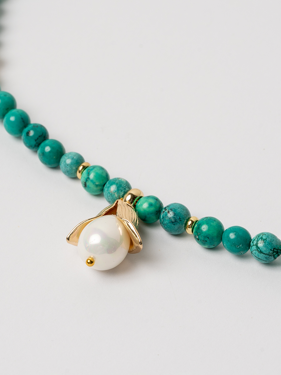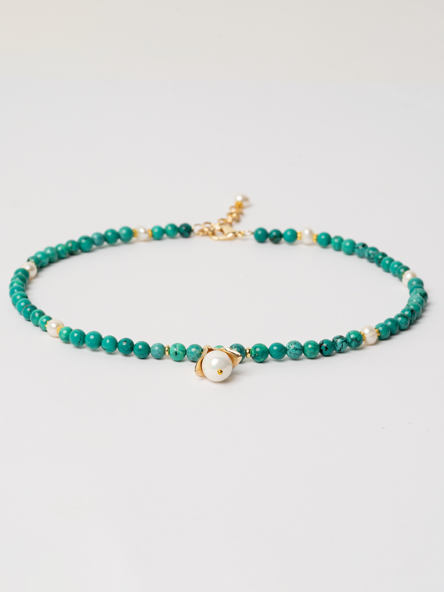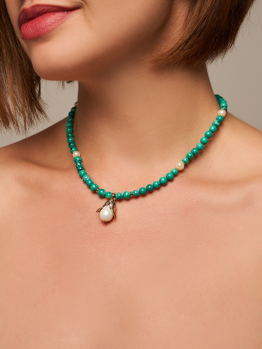 удлинительная цепочка поможет скорректировать размер посадки 42-46 см . Туркинит 6 мм. жемчужина 7 мм. длина кулона 2 см.