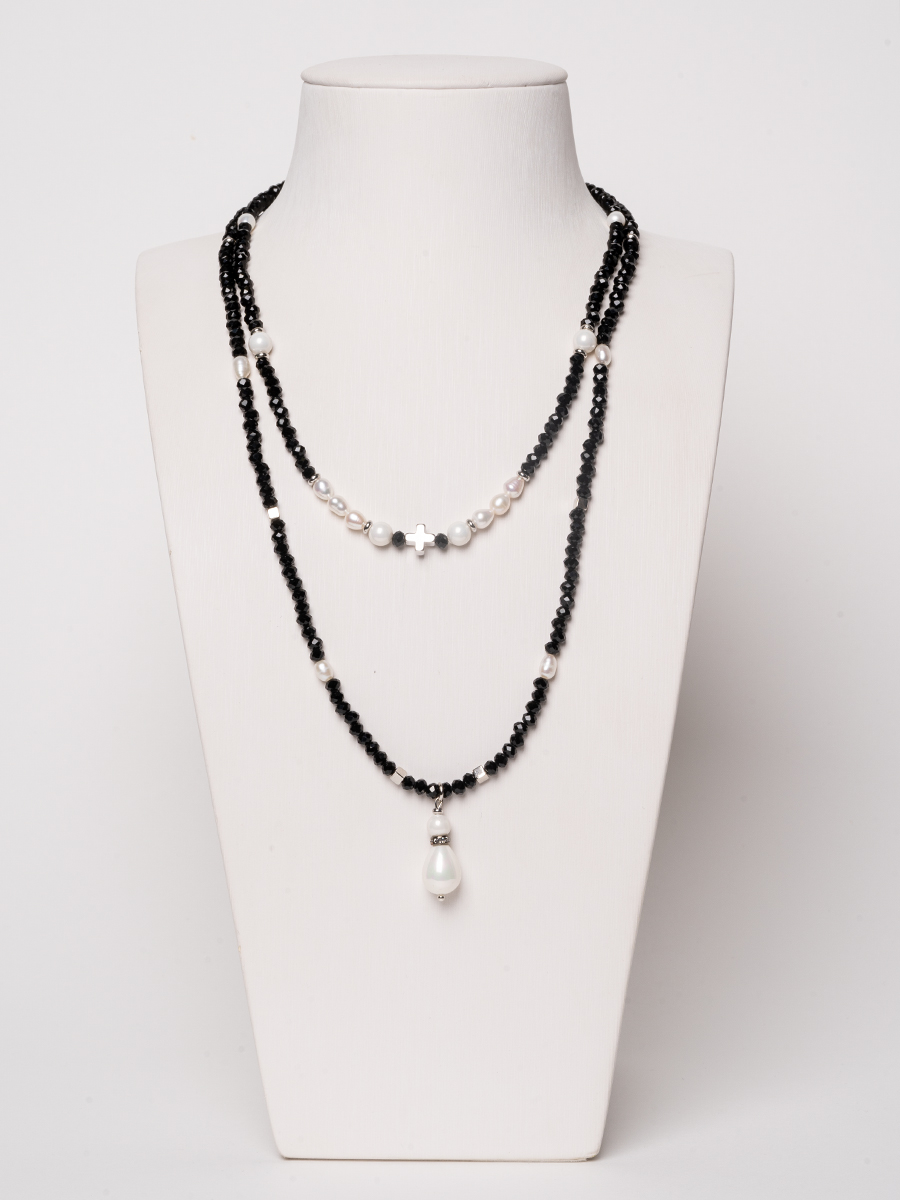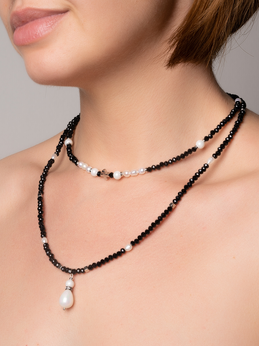 удлинительная цепочка поможет скорректировать размер посадки 43-48 см. размер кулона-жемчужины 1*2.5 см. хрустальное стекло 4 мм.