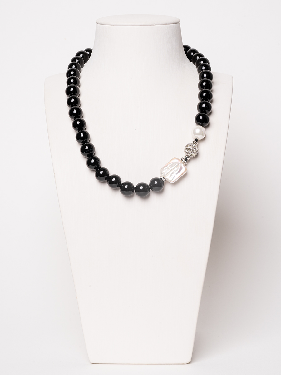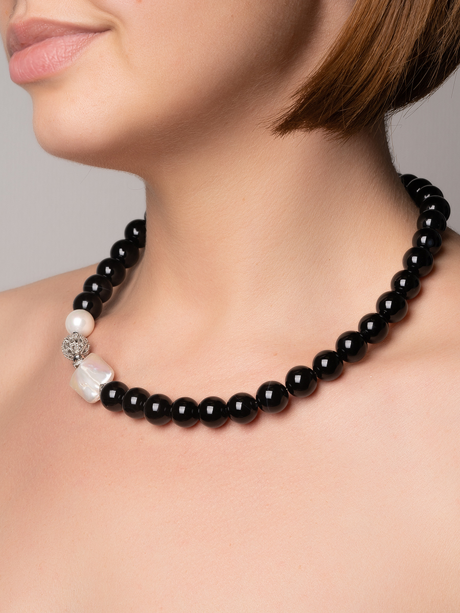 удлинительная цепочка поможет скорректировать размер посадки 48-53 см. диаметр жемчужины 12 мм. агат 12 мм.