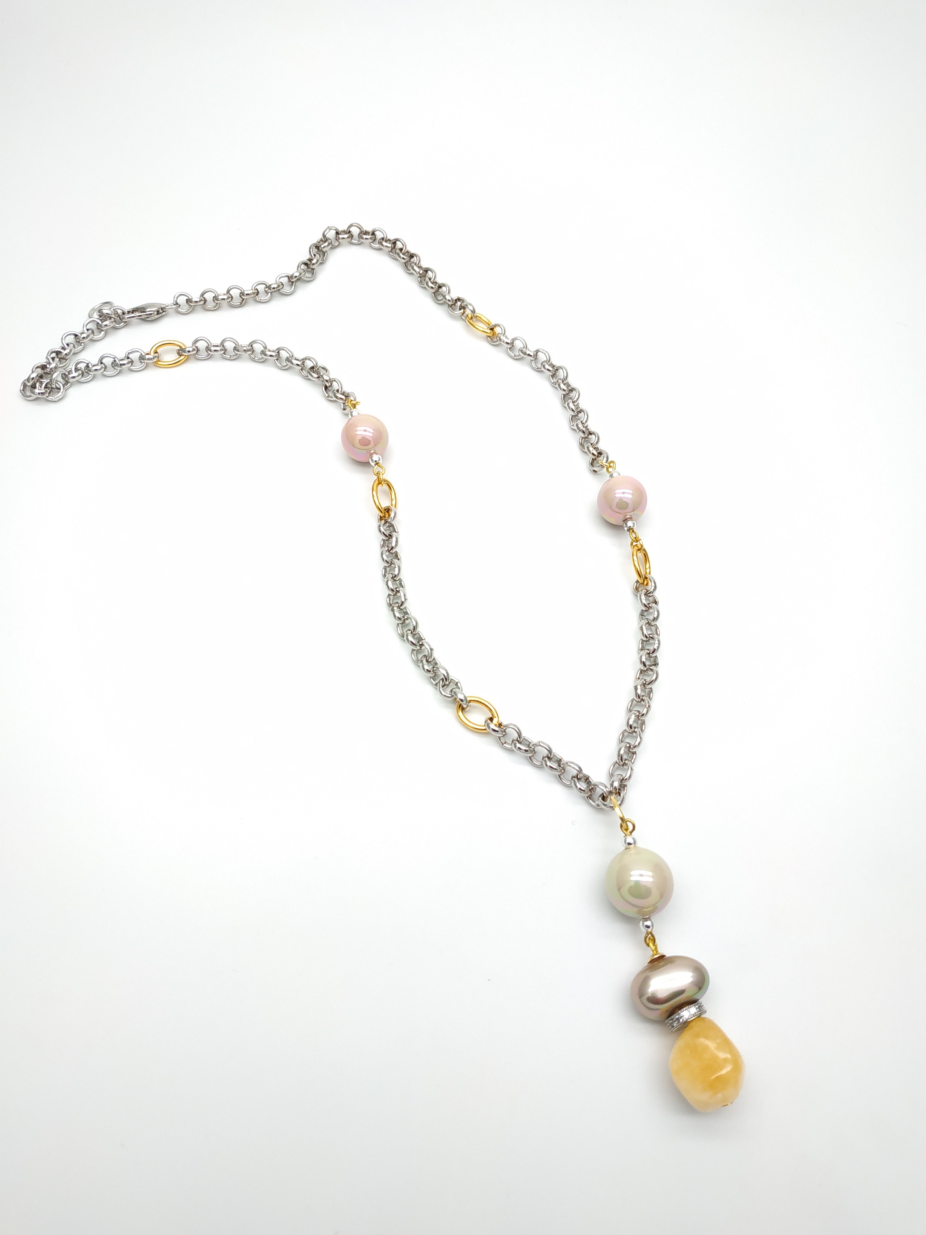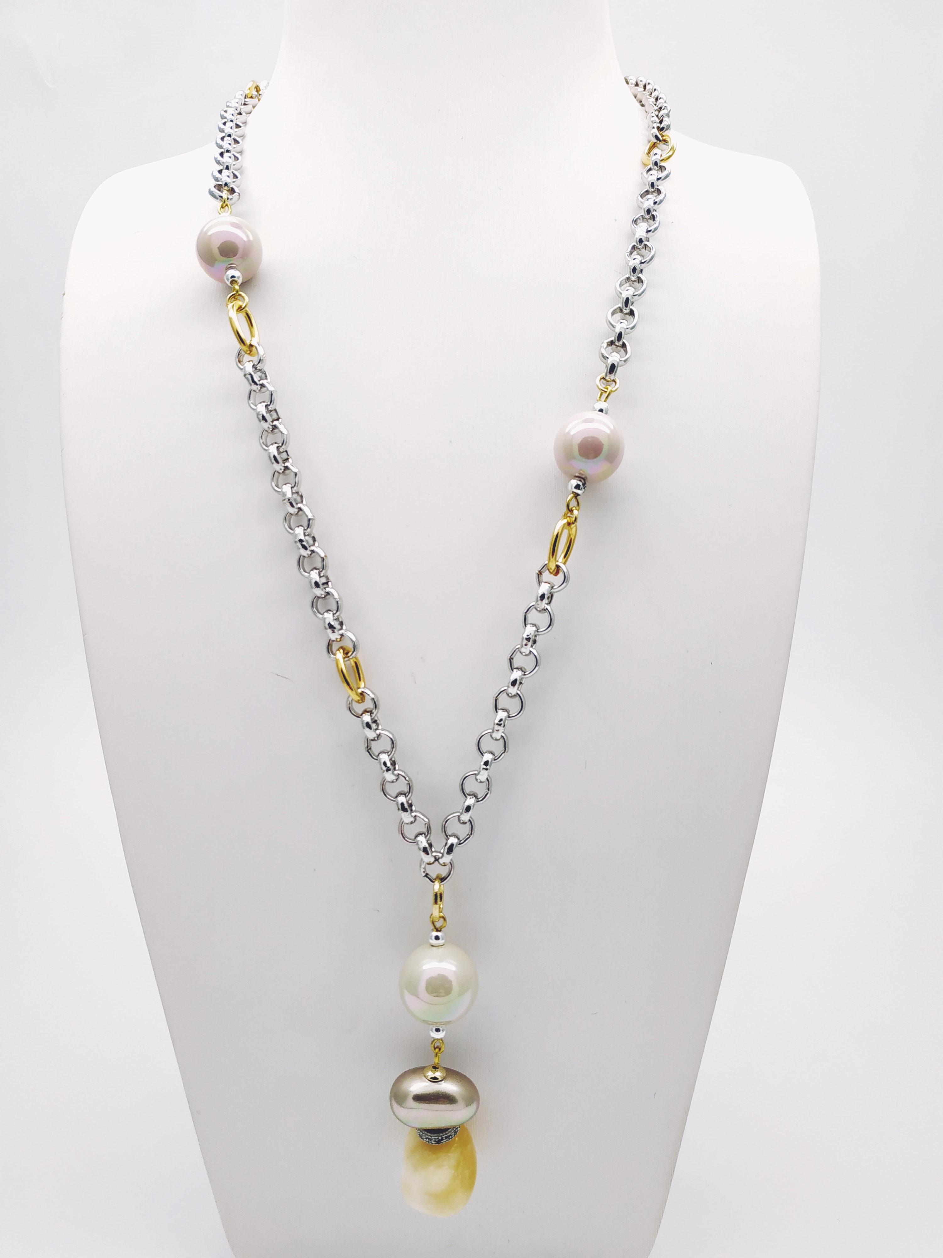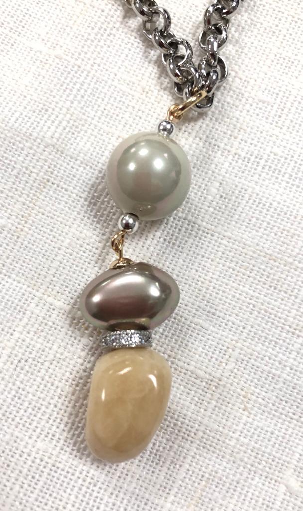 Длина колье 54см,ширина5мм. Жемчуг Майорка 12;14мм, солнечный камень15мм.