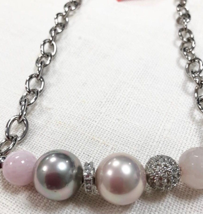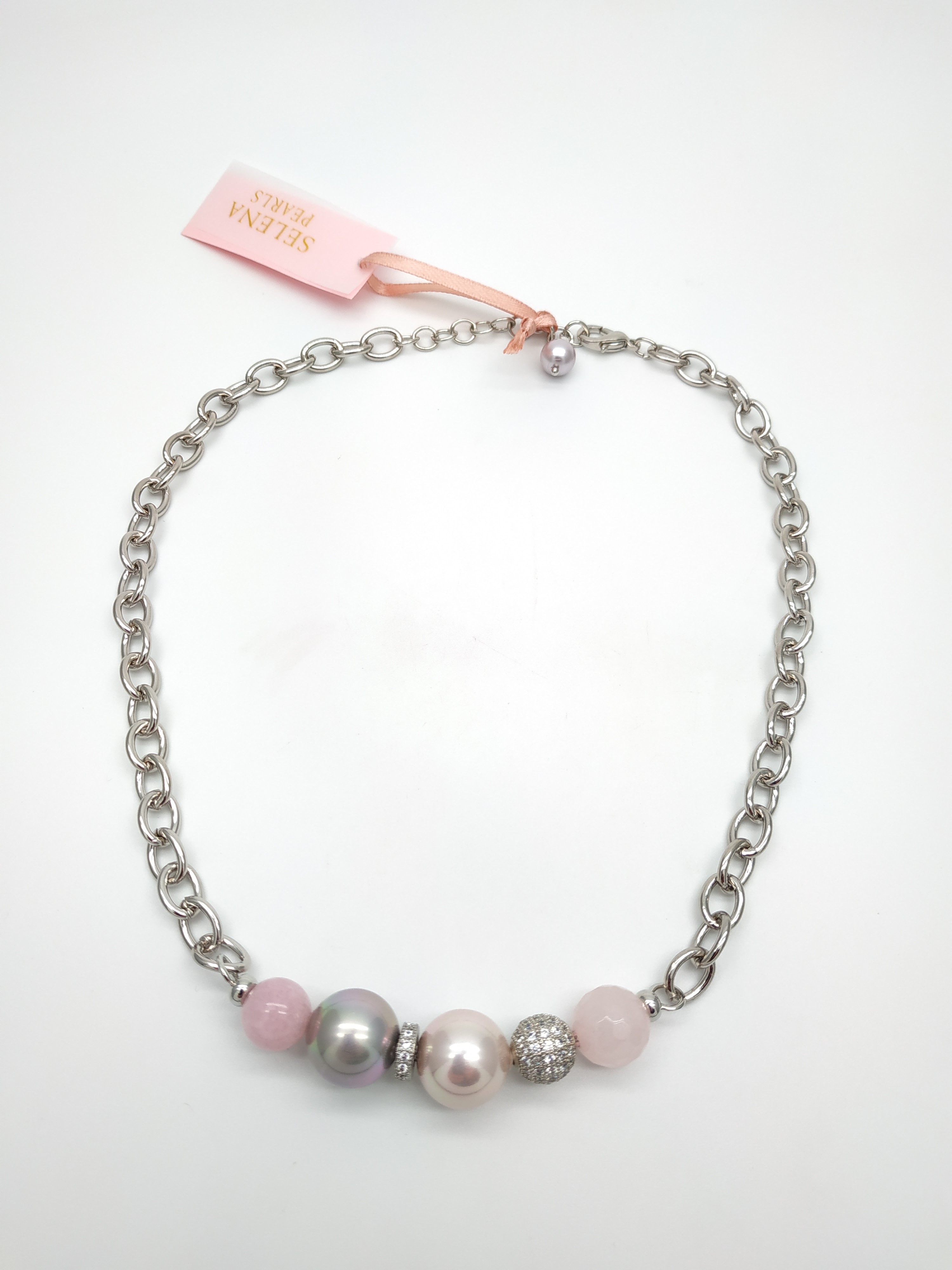Удлинительная цепочка поможет скорректировать размер посадки 43 - 48см, ширина7мм. Жемчуг Майорка14мм,розовый кварц12мм.