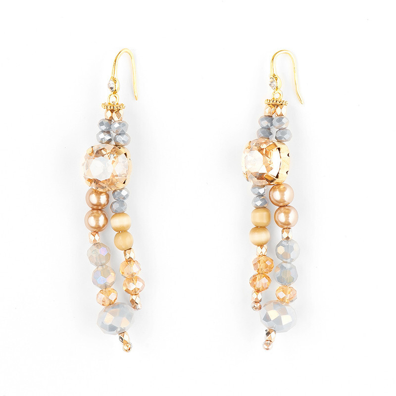 Кристаллы Preciosa, кошачий глаз, искусственный жемчуг, латунь. Гальваническое покрытие: золото.