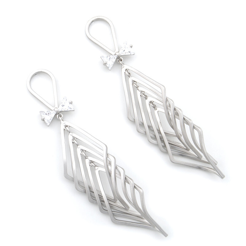 Фианиты, латунь. Гальваника родием с серебряными штифтами.