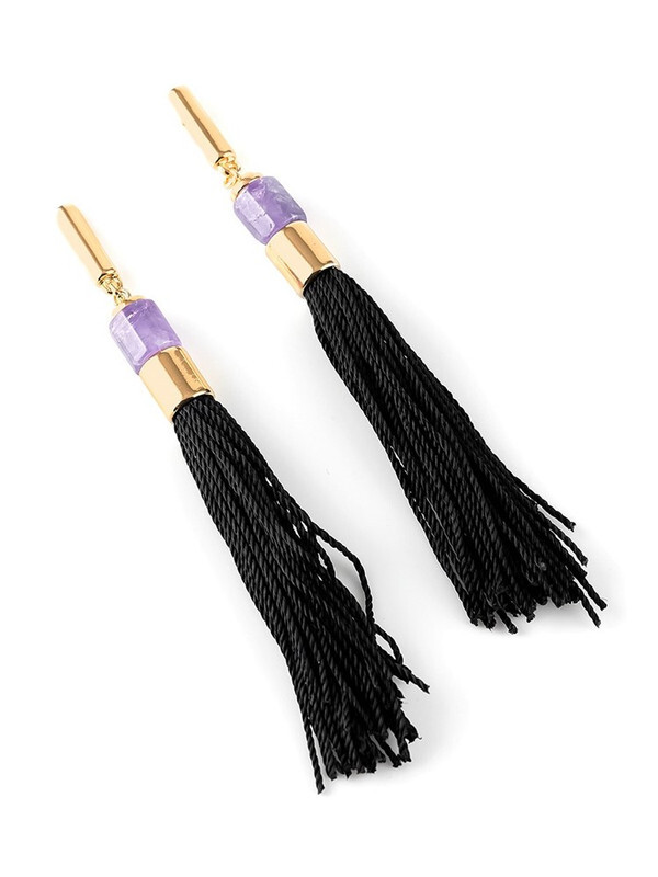 Аметист, текстиль, латунь. Гальваническое покрытие: золото.