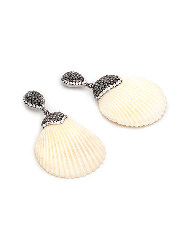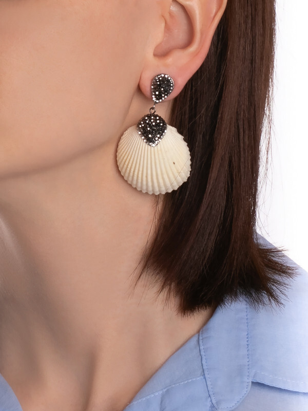 Морская ракушка, кристаллы Preciosa, латунь. Гальваническое покрытие: родий.