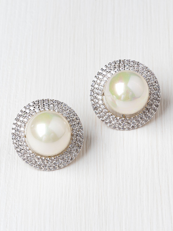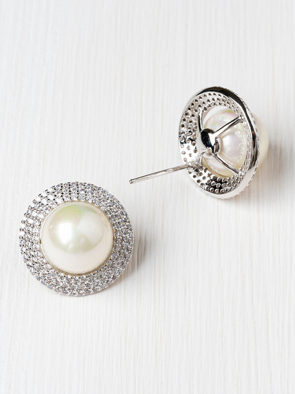 Фианиты, искусственный жемчуг, латунь. Гальваническое покрытие: родий.