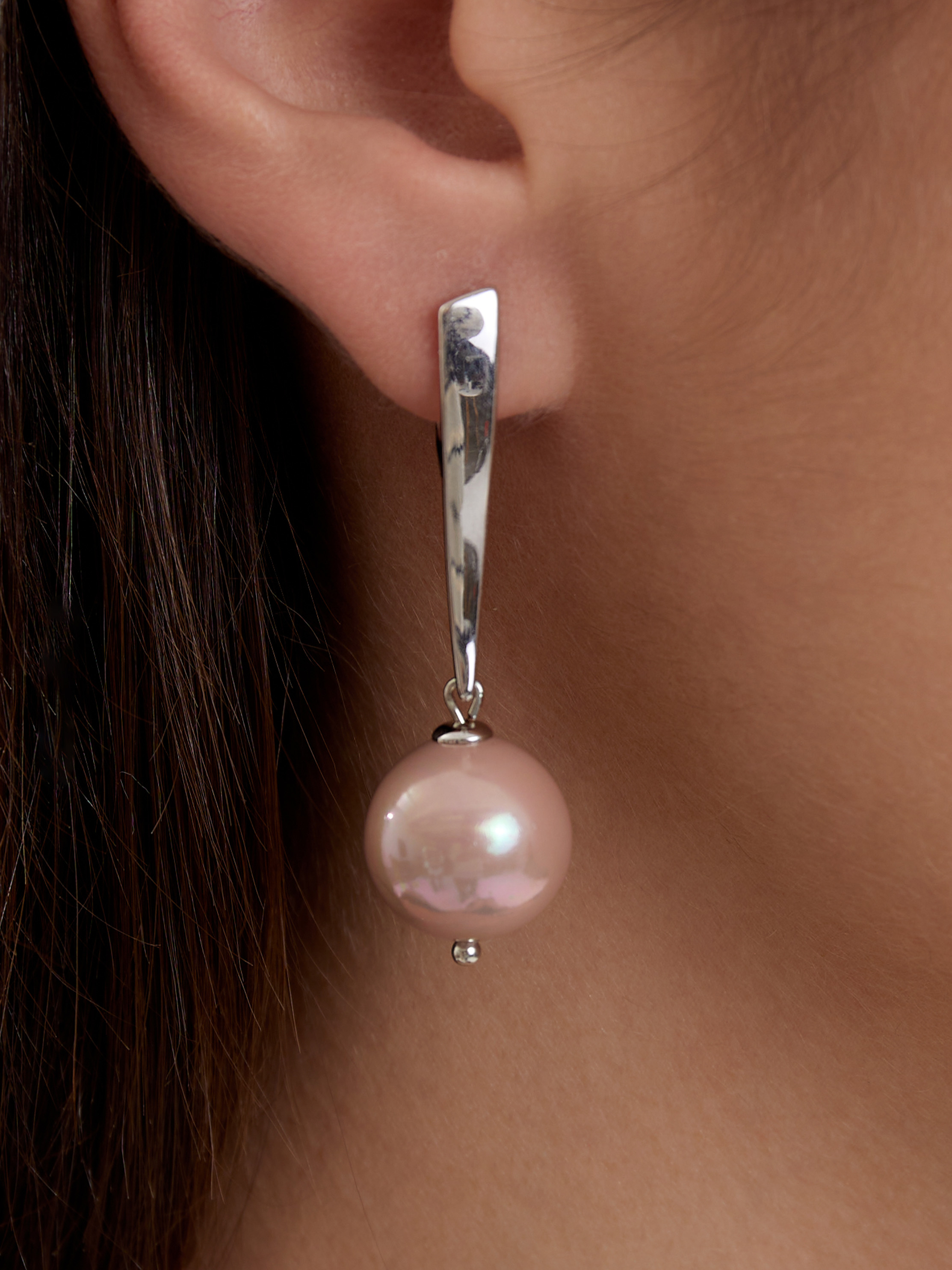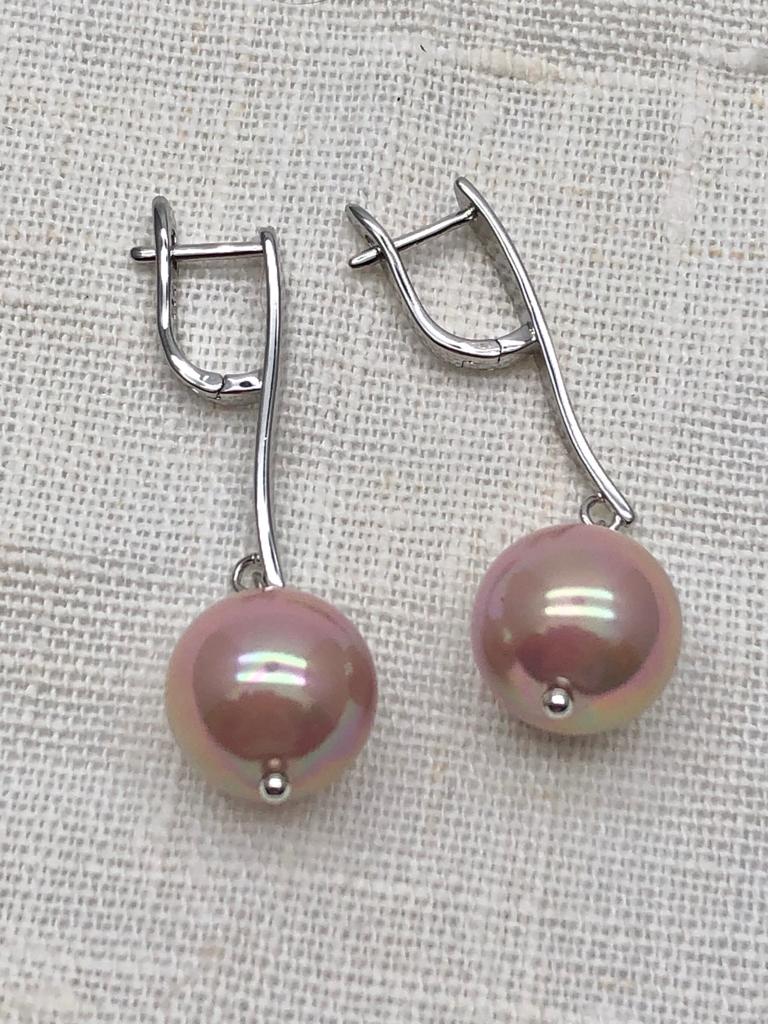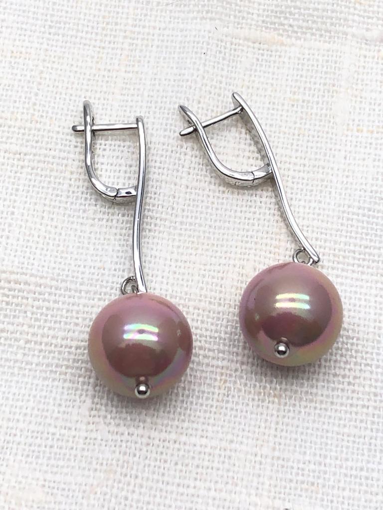 Длина серег с учетом швенз4.5см, ширина14мм. Жемчуг Майорка14мм.