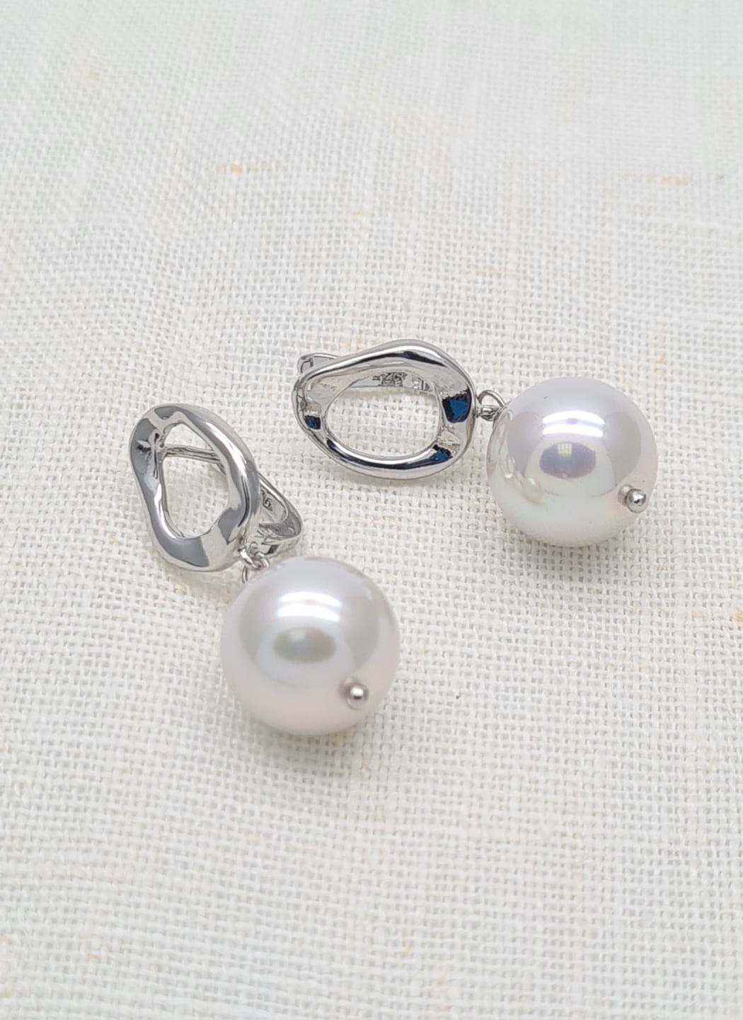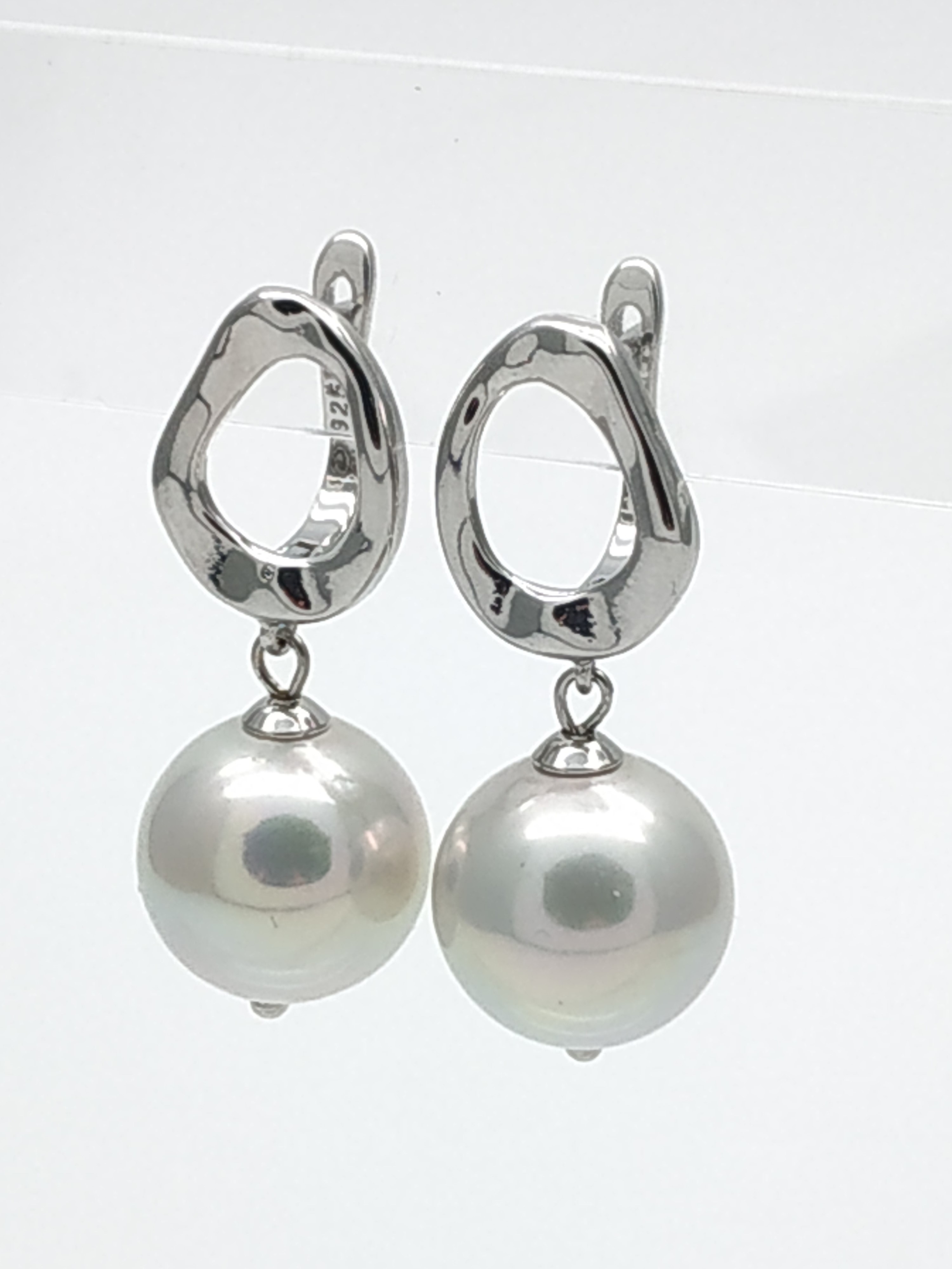 Длина серег с учетом швенз 3.5см,ширина14мм. Жемчуг Майорка14мм.