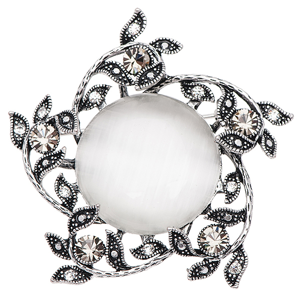 Кошачий глаз, стразы Swarovski. Гальваническое покрытие: родий.