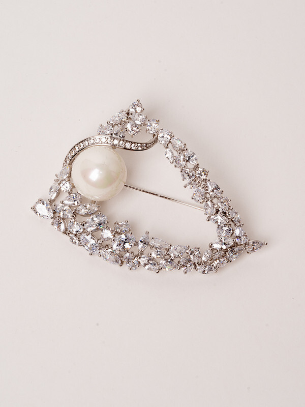 Фианиты, искусственный жемчуг, латунь. Гальваническое покрытие: родий.