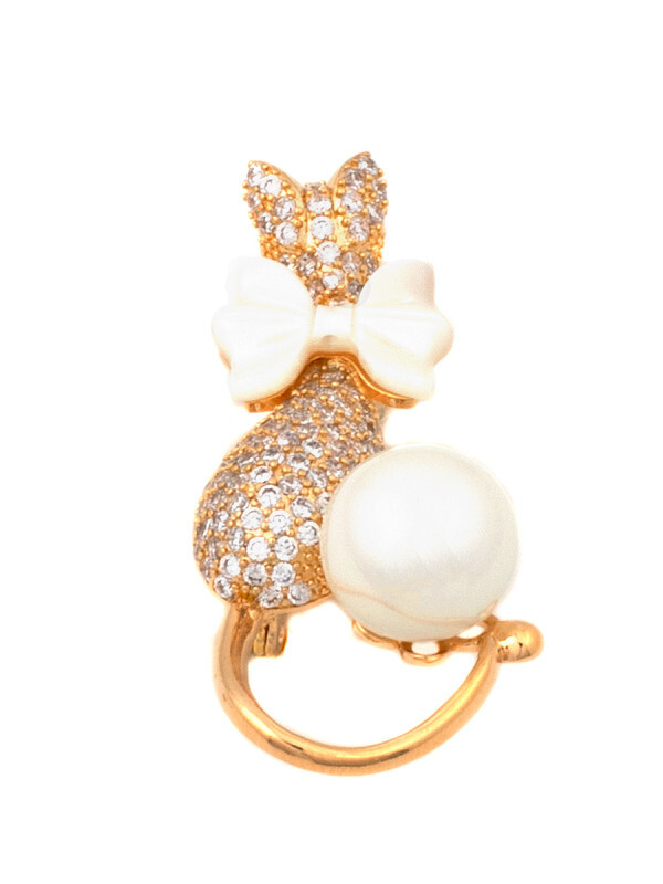 Фианиты, искусственный жемчуг, латунь. Гальваническое покрытие: золото.