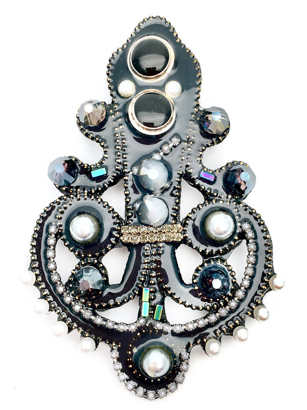 Кристаллы Preciosa, искусственный жемчуг, эмаль, текстиль. Гальваническое покрытие: родий.