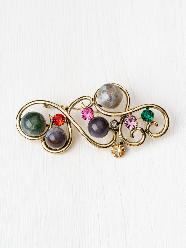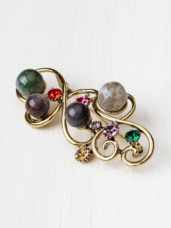 Нефрит, аметист, кристаллы Preciosa, латунь. Гальваническое покрытие: золото.