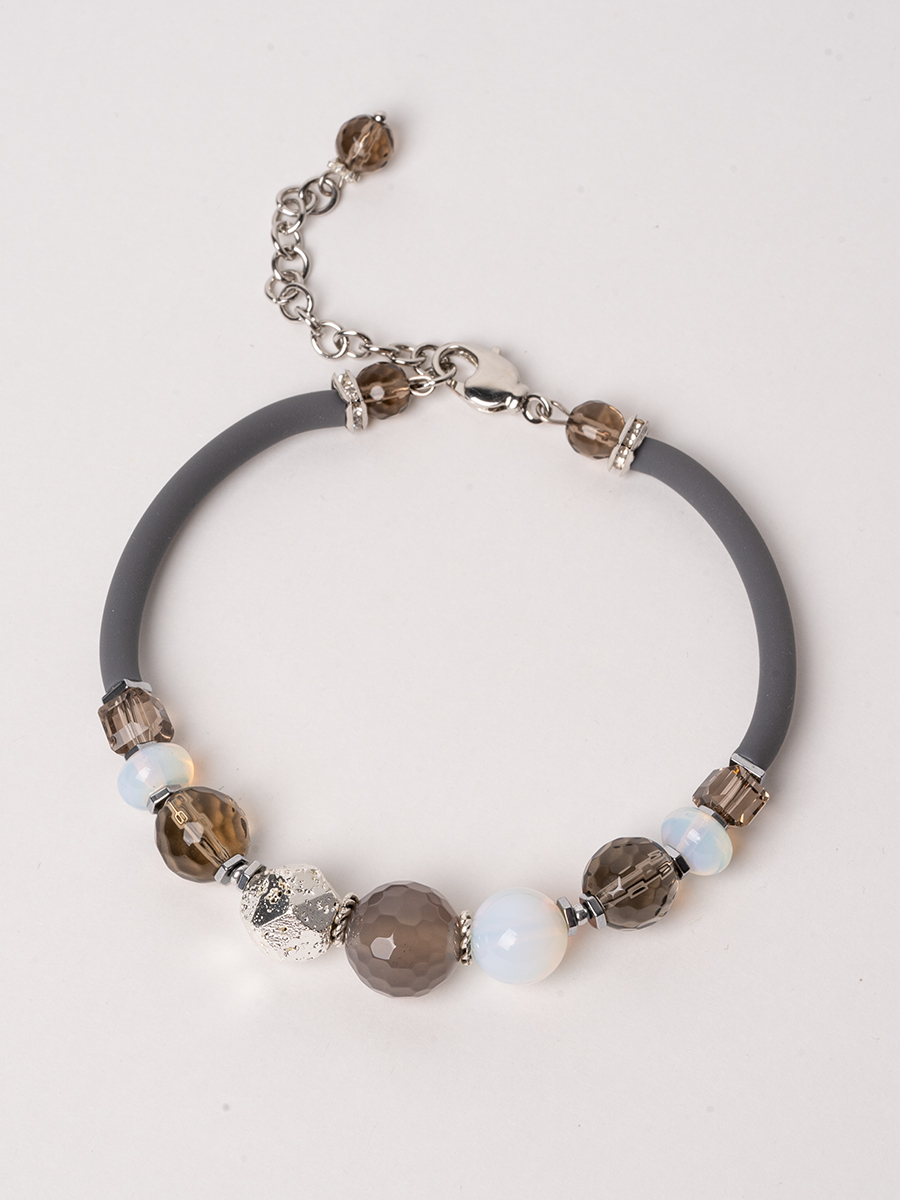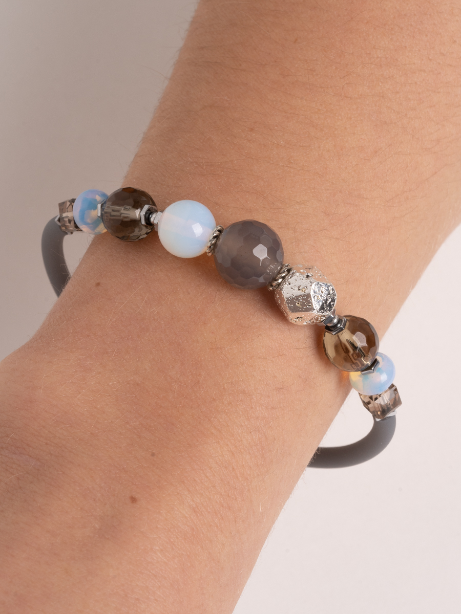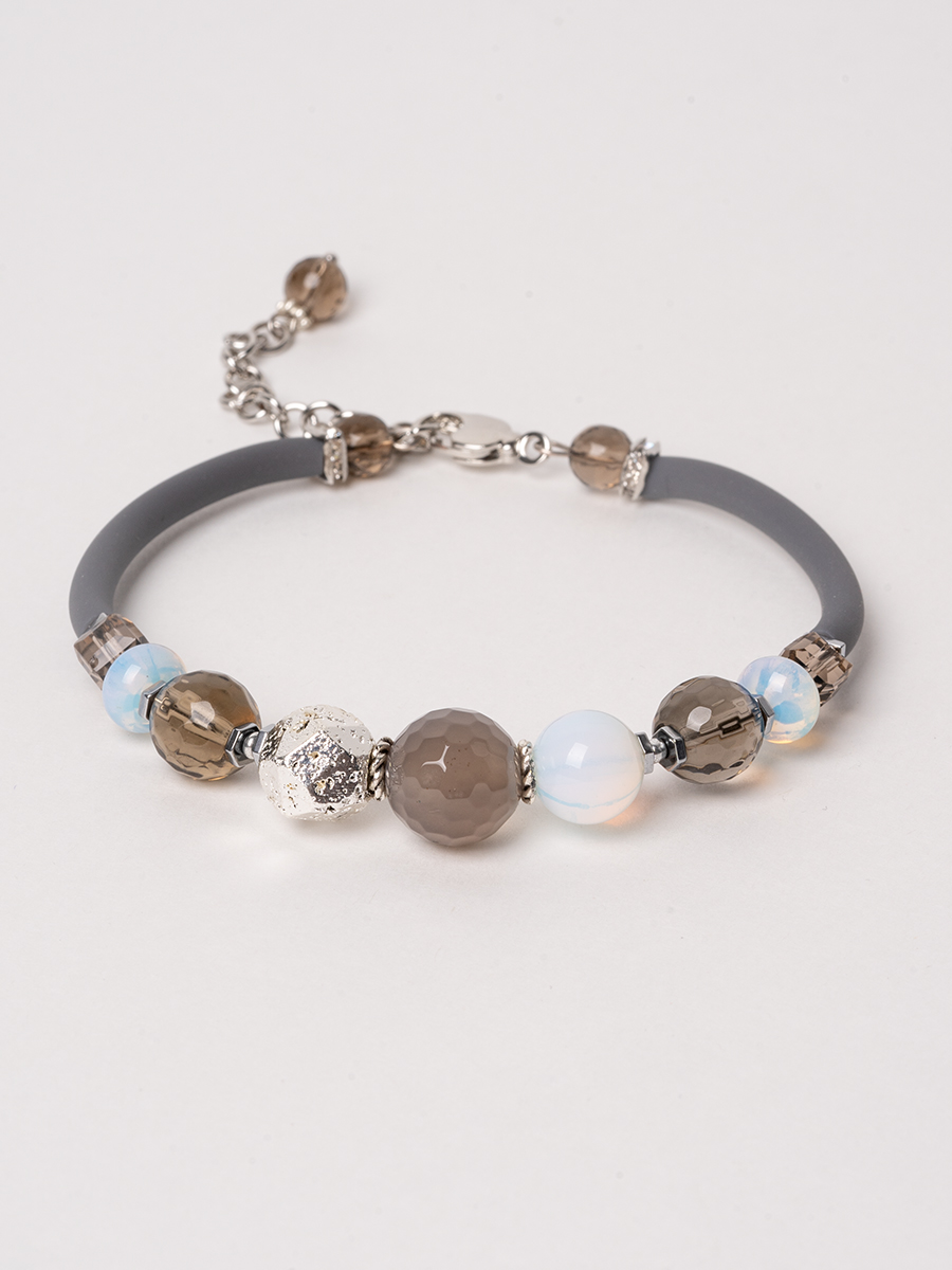длина браслета регулируется по ширине запястья 19-24 см. диаметр агата 12 мм. лунный камень 10 мм. раухтопаз 8 мм.