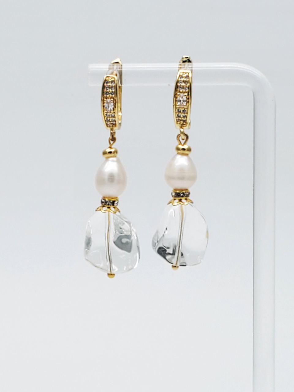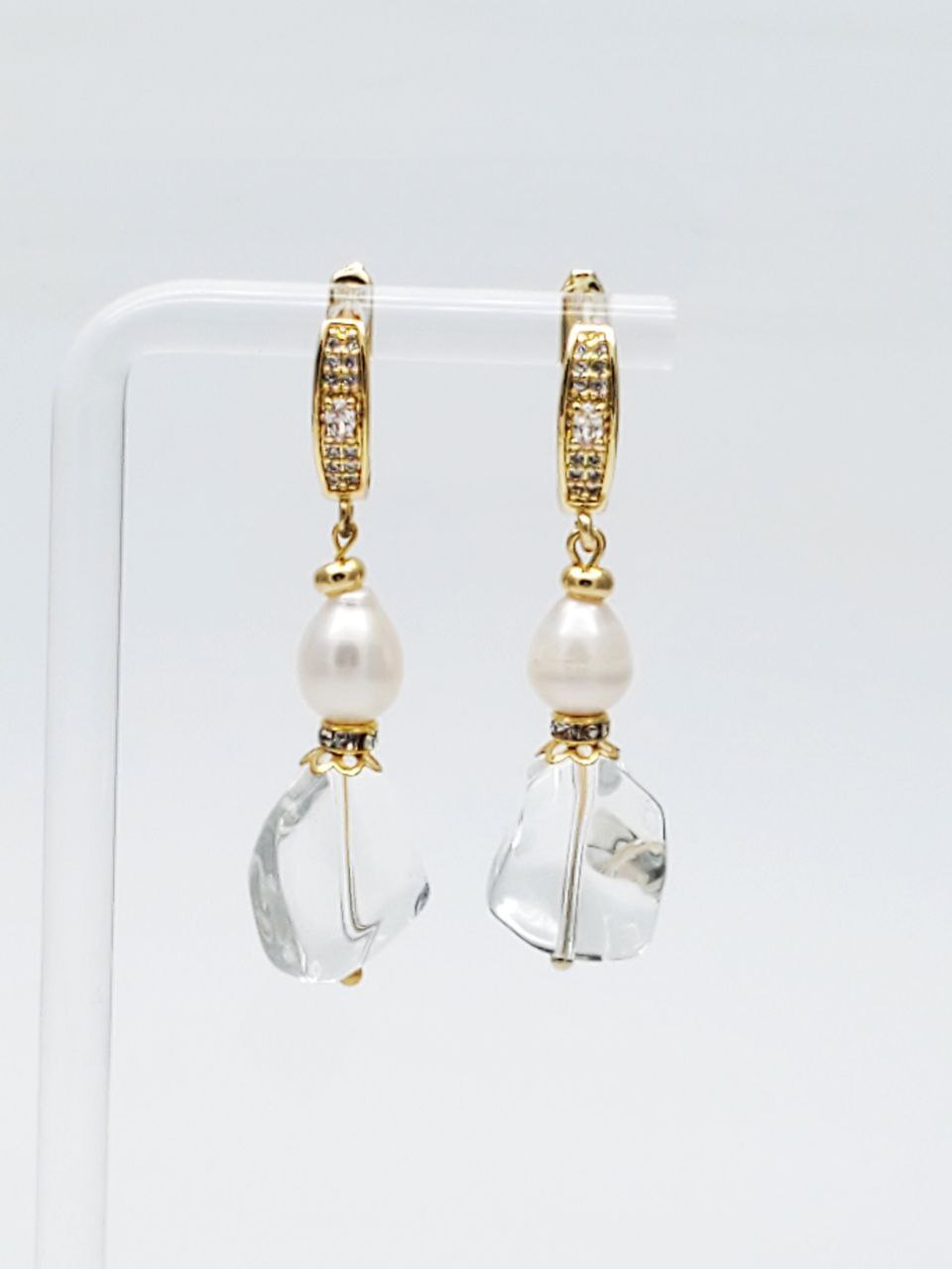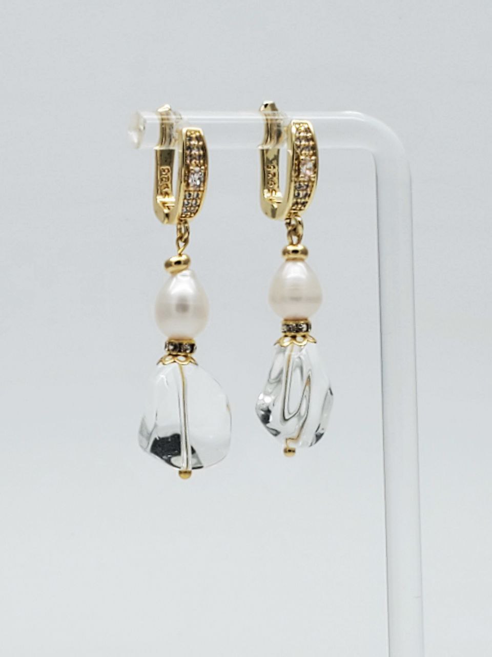 Длина серег с учетом швенз 4,8 см, ширина 12 мм. Натуральный жемчуг 6*8 мм, кварц 12*15 мм.