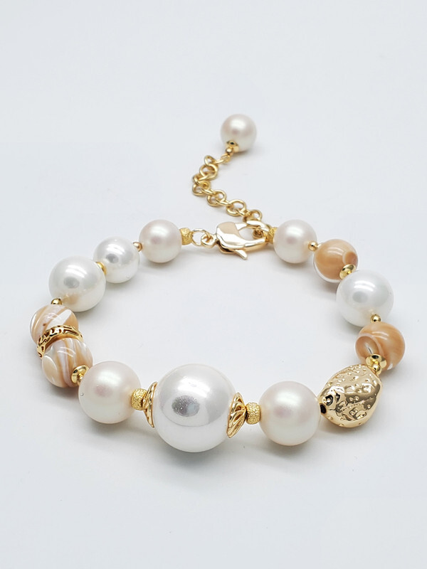 Длина браслета регулируется по ширине запястья 19 - 24 см. Жемчуг Майорка 10:12:14 мм, натуральный перламутр 10 мм.