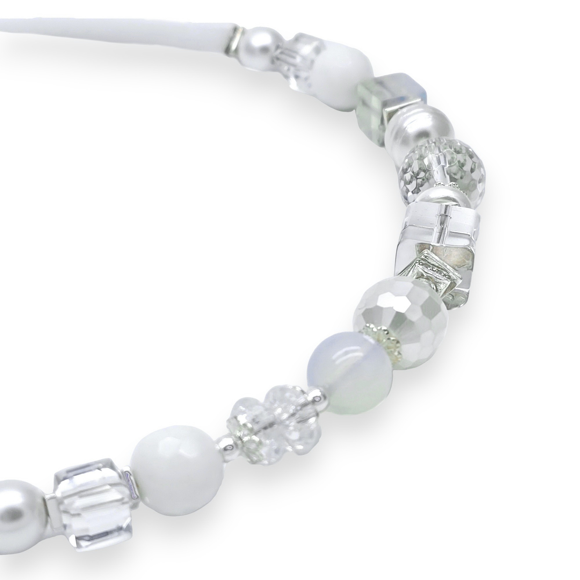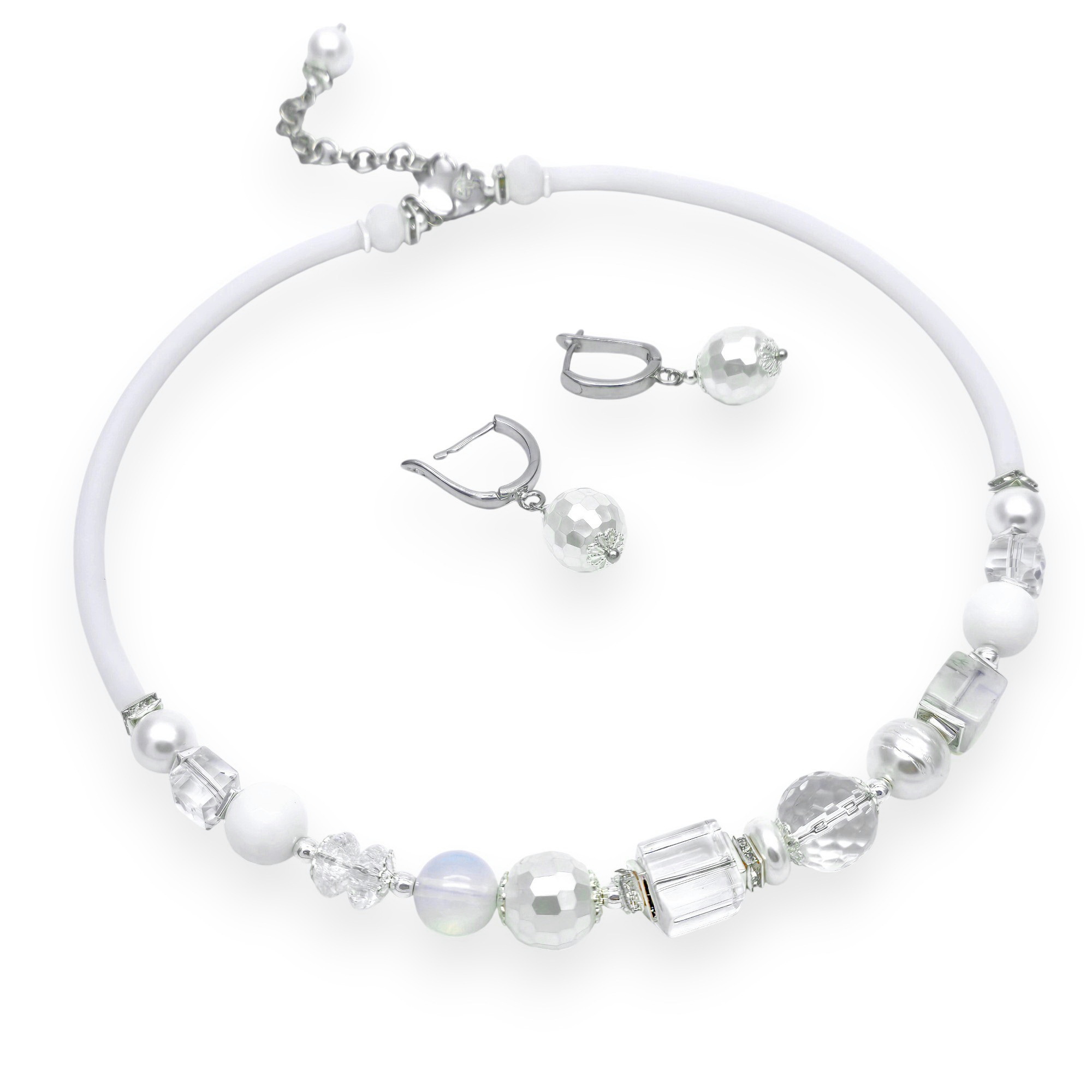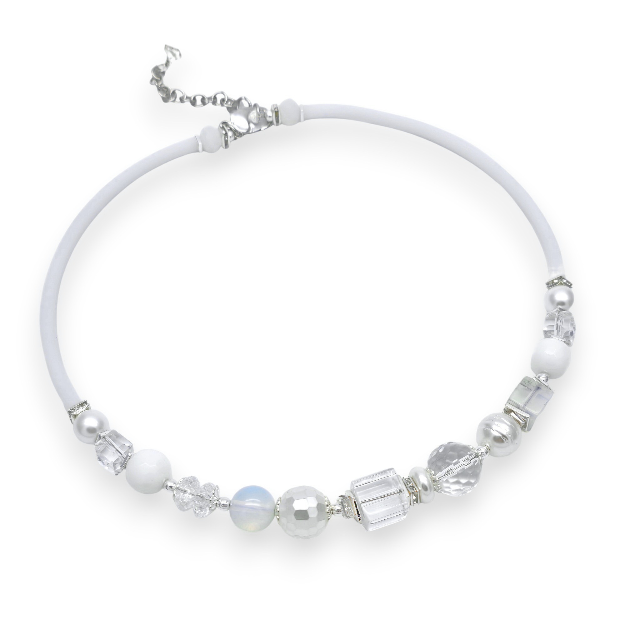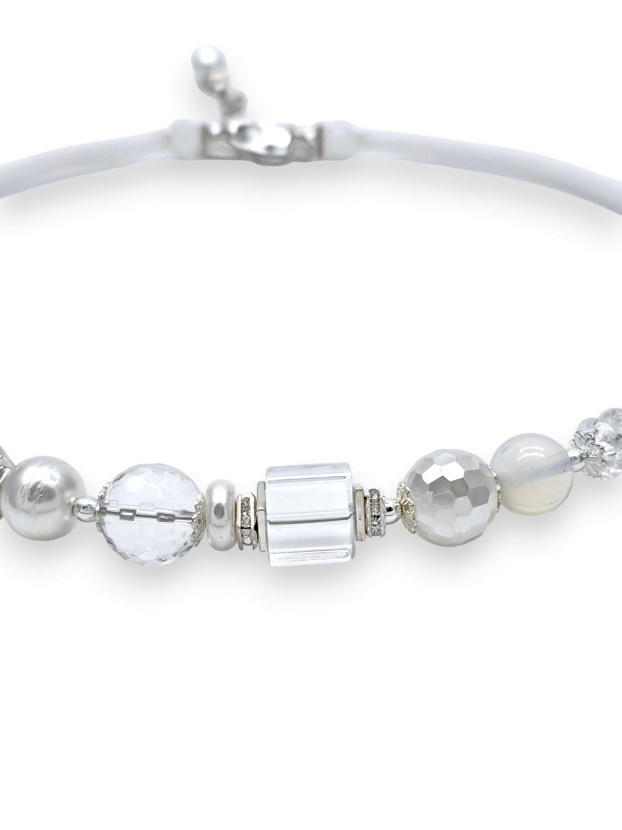 Длина колье 40+5 см. Лунный камень 10 мм, жемчуг Майорка 8;12 мм, агат 10 мм, хрусталь 12 мм.