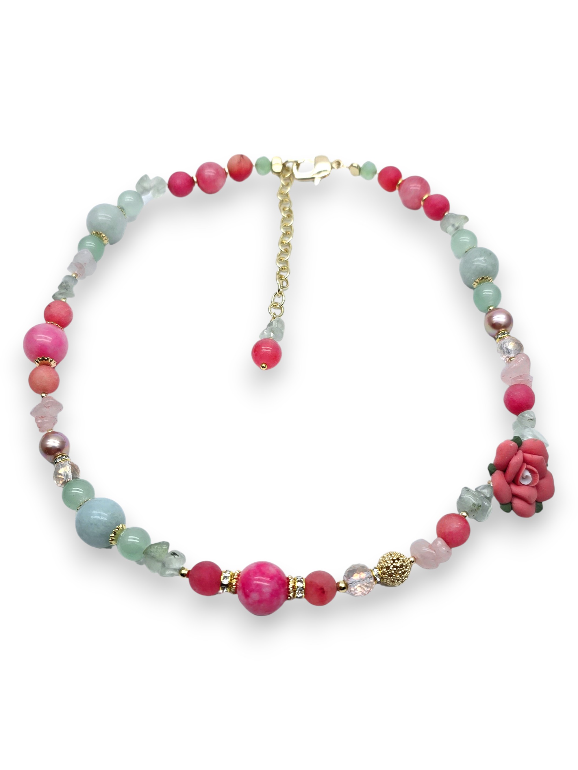 Длина колье 42 - 50 см. Кварц 8:10:12 мм, жемчуг Майорка 8 мм.