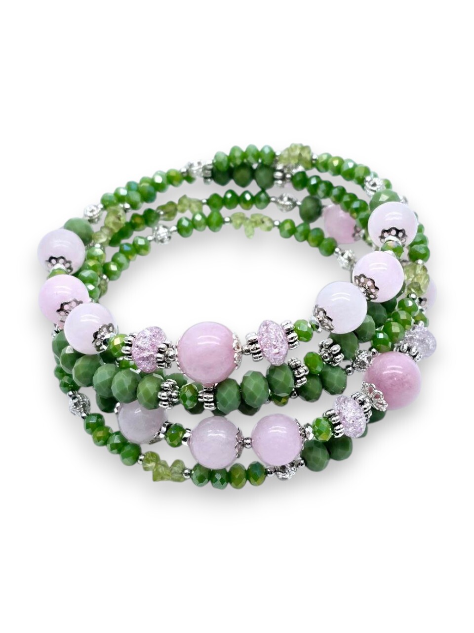Браслет регулируется по ширине запястья. Диаметр 6,5 см, ширина 3 см. кварц 8;10 мм, хрустальное стекло 4;5 мм.