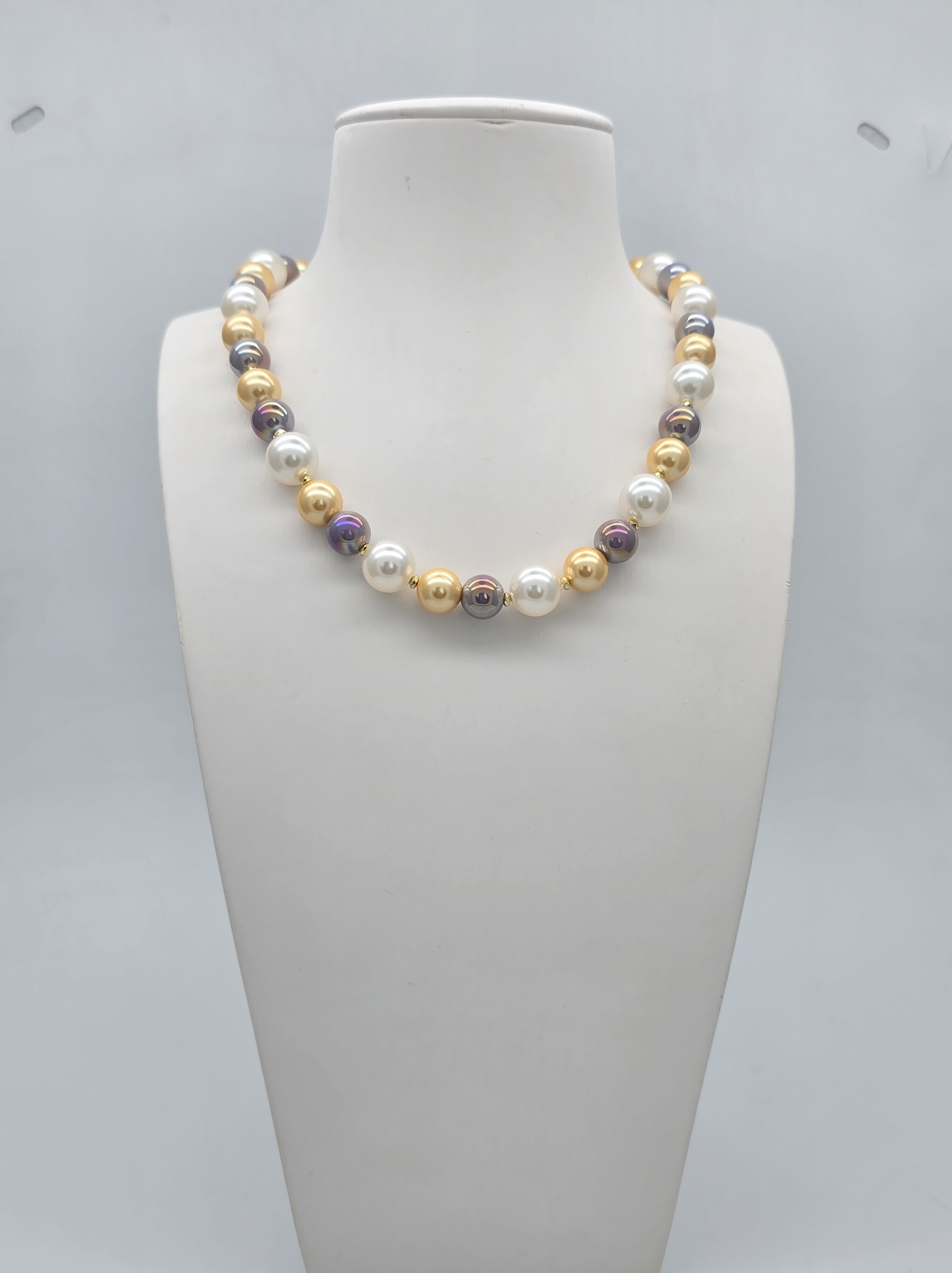 Длина колье 46+7,5 см. Жемчуг Майорка - 12 мм, 10 мм