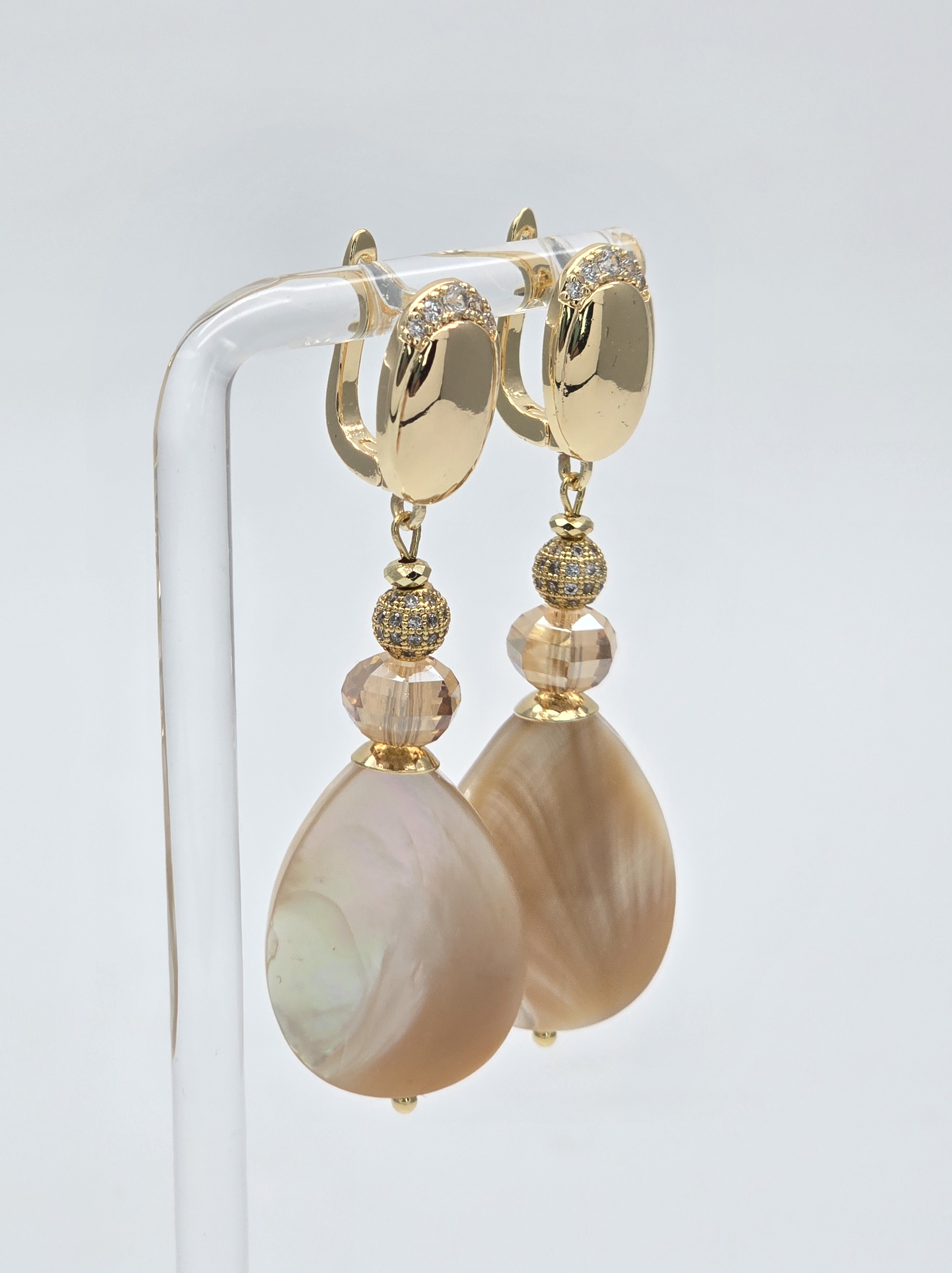 Длина серег с учетом швенз 5,5 см. натуральный перламутр 2,6*2 см.
