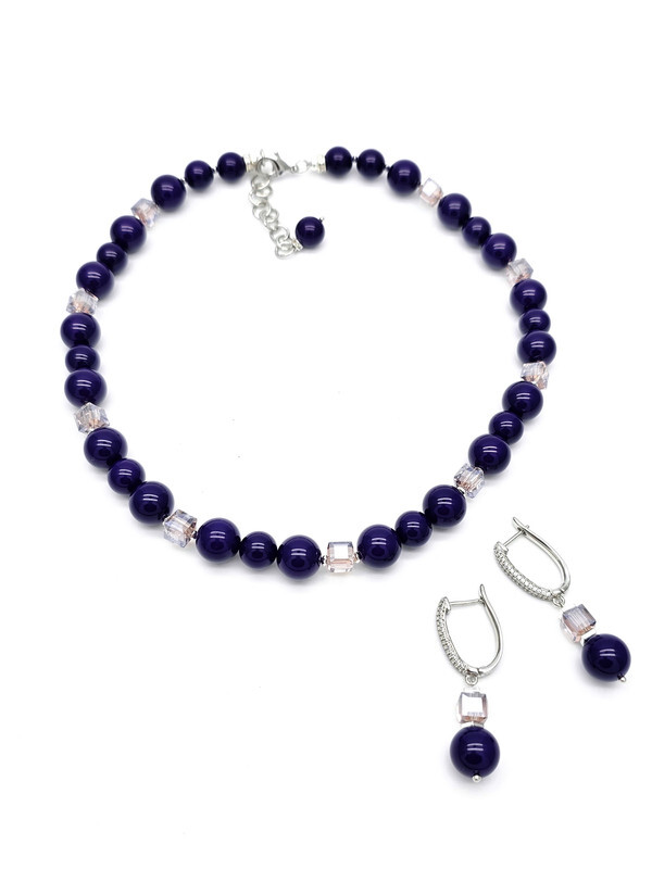 Длина колье 45 - 50 см. Жемчуг Майорка 12;10 мм, хрусталь кубик 8 мм.