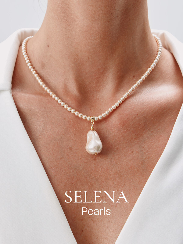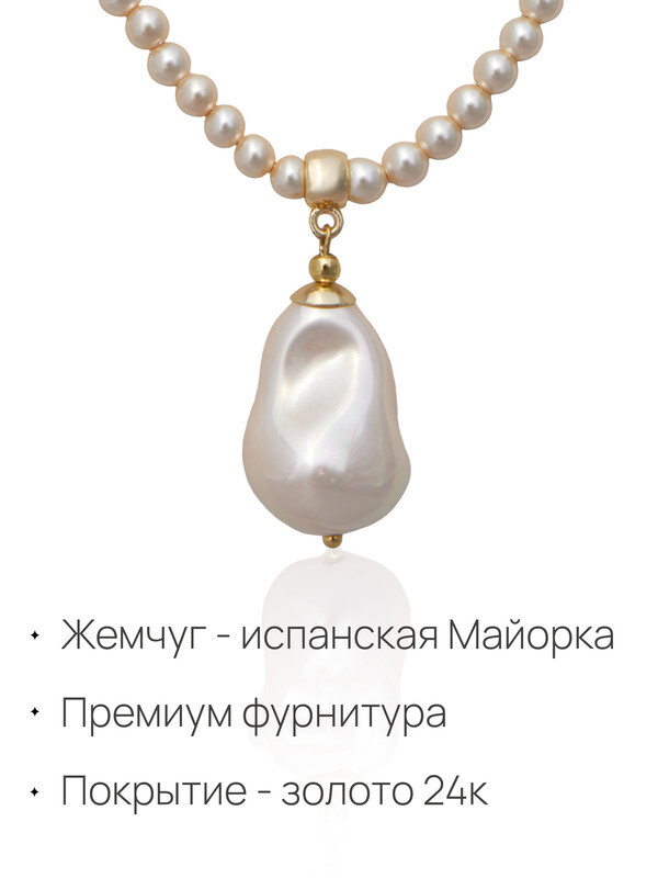 Длина колье 43+4 см. Жемчуг Майорка 5 мм. Барочный жемчуг Майорка 14*22 мм.