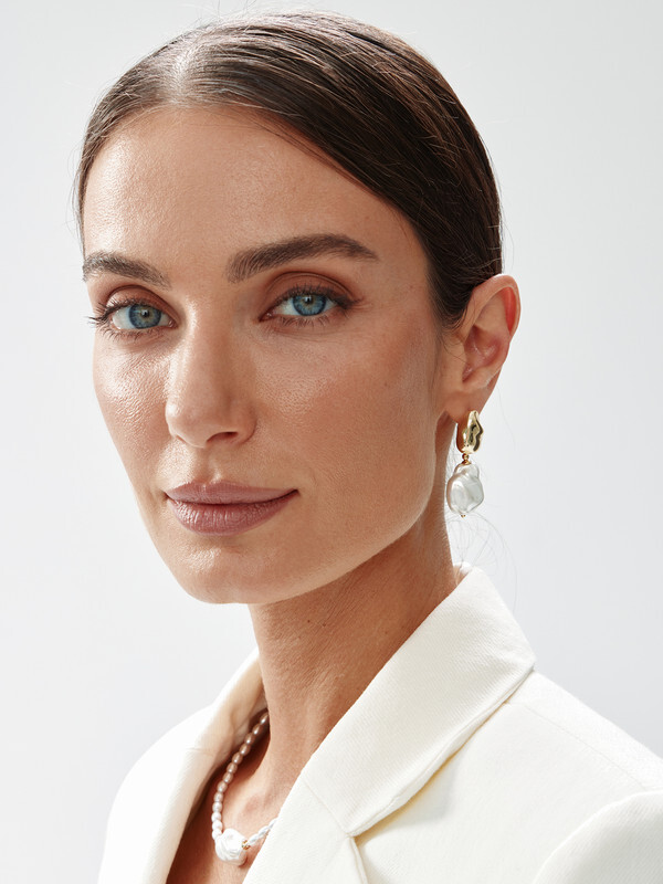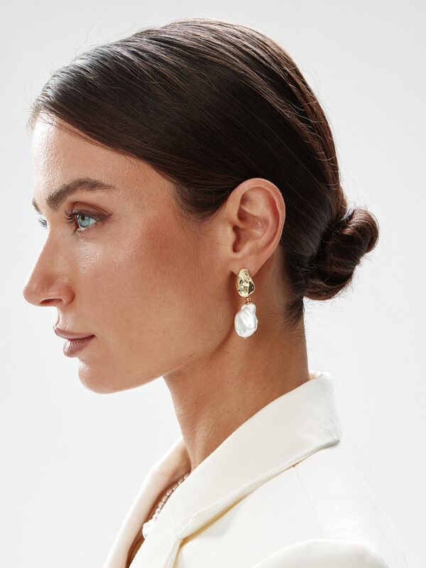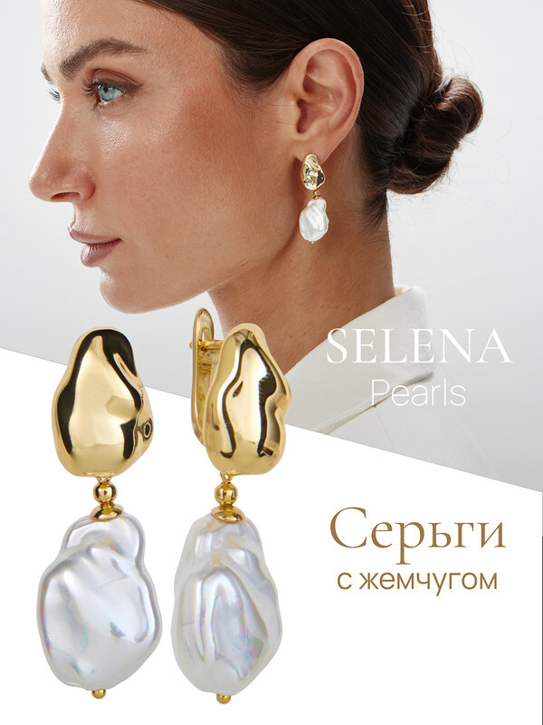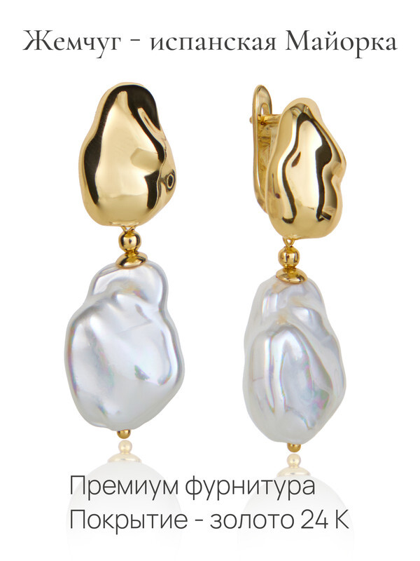 Длина серег с учетом швенз 4,4 см. Жемчуг Майорка 15*23 мм.