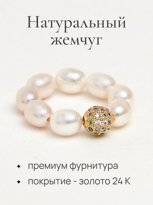 Размер кольца регулируется. Диаметр 2 см. Жемчуг 6 мм.