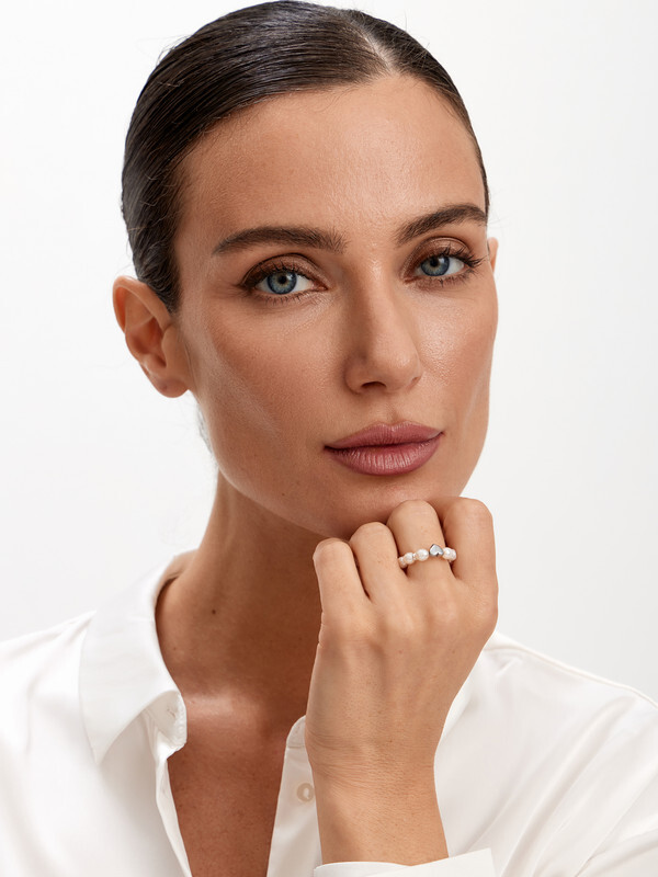Размер кольца регулируется. Диаметр 2 см. Жемчуг 6 мм.