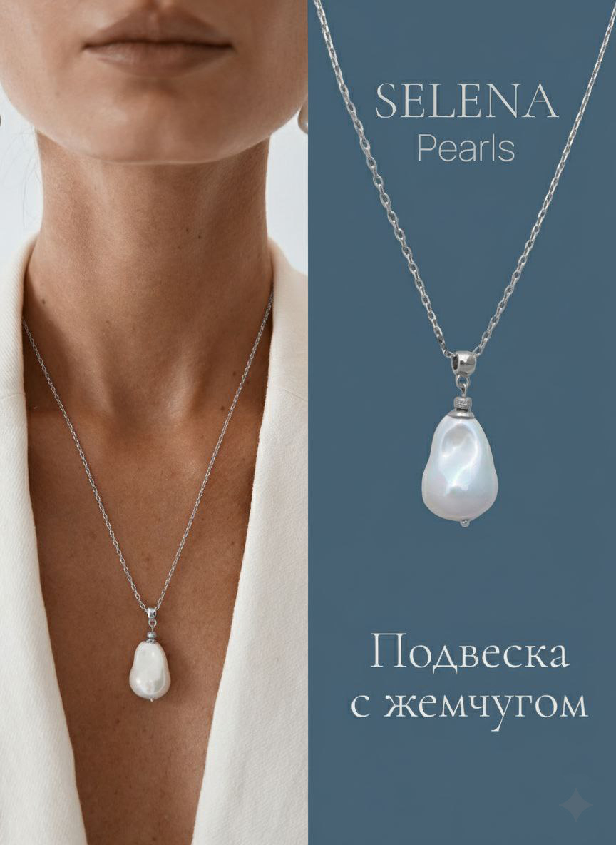 Длина колье 51 - 56 см. Жемчуг Майорка 15*22 мм.
