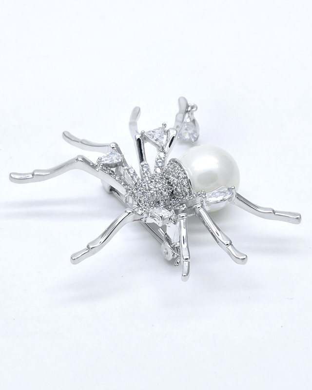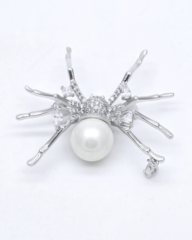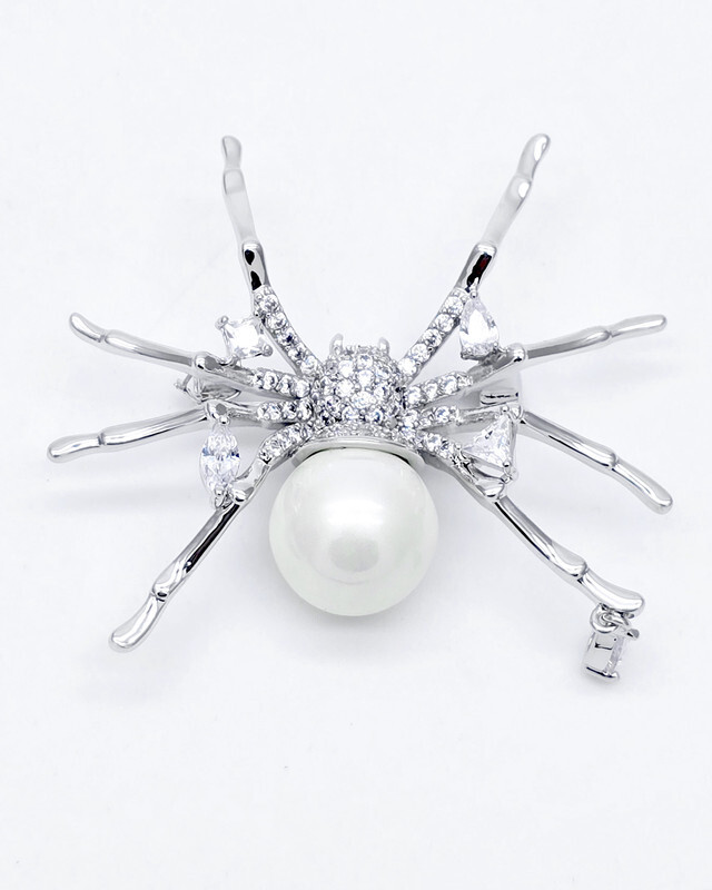 Жемчуг Майорка , цирконы, ювелирный сплав. Гальваническое покрытие: родий.