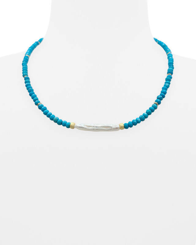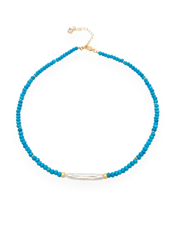 Длина колье 37 - 43 см. Жемчуг 4*25 мм, турквенит 4 мм.