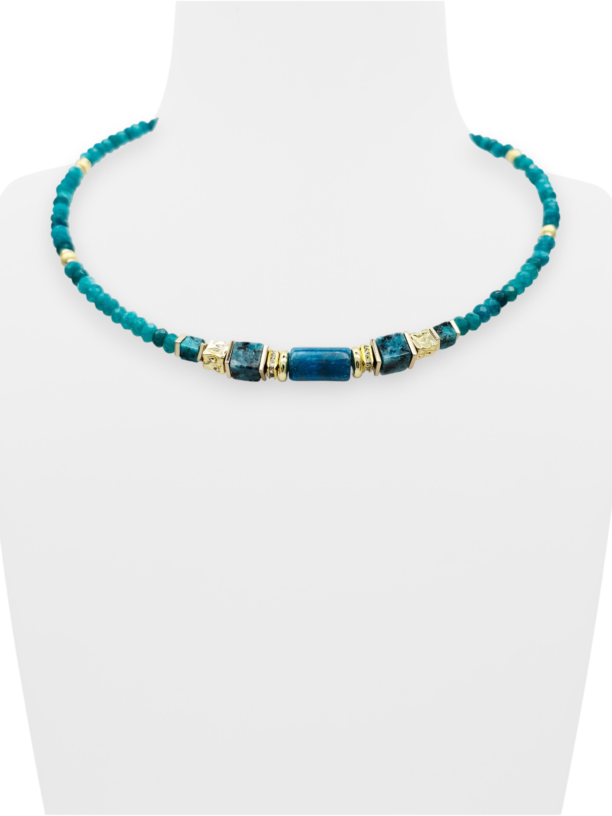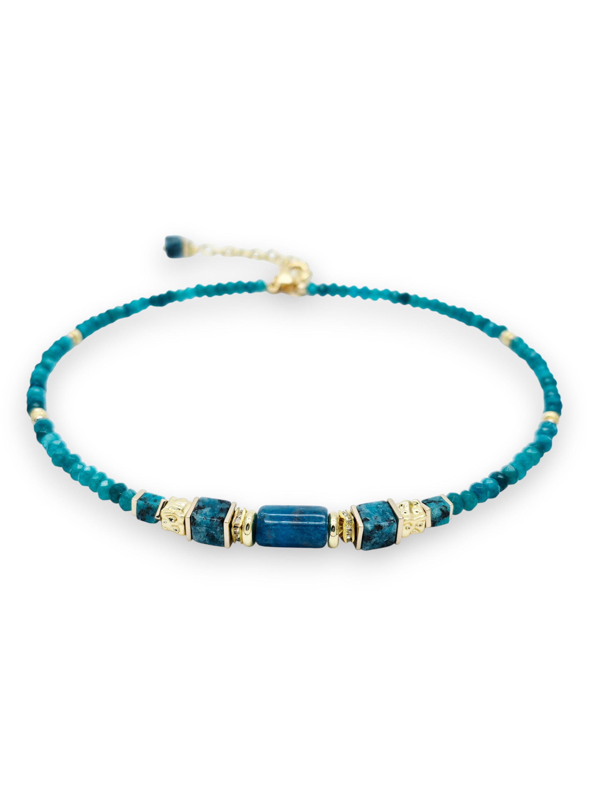 Длина колье 39 - 44 см. Агат 4 мм, кубик агата 4;6 мм; Апатит 8*10 мм.