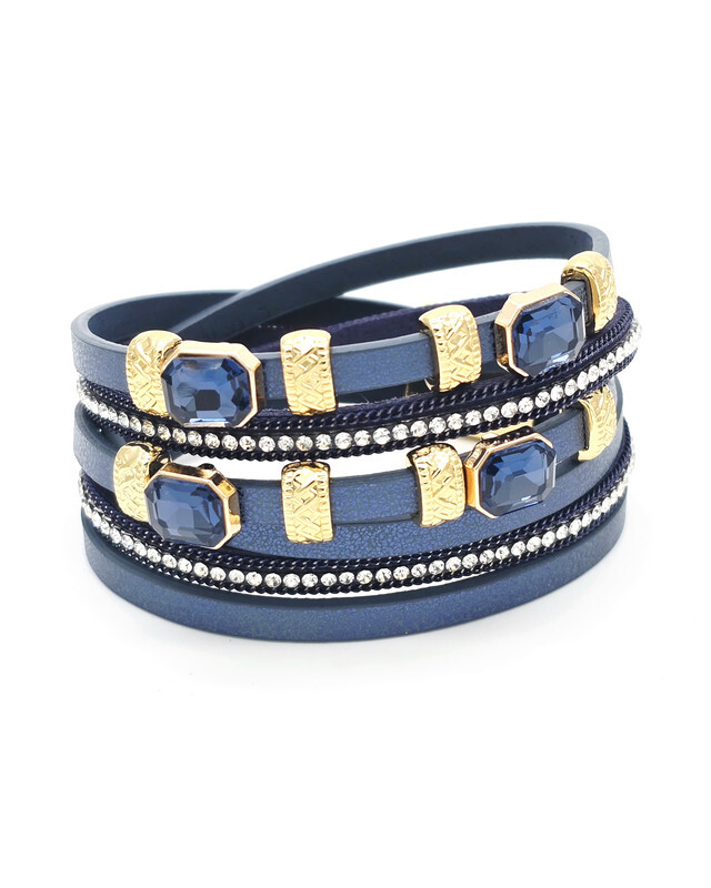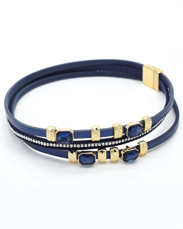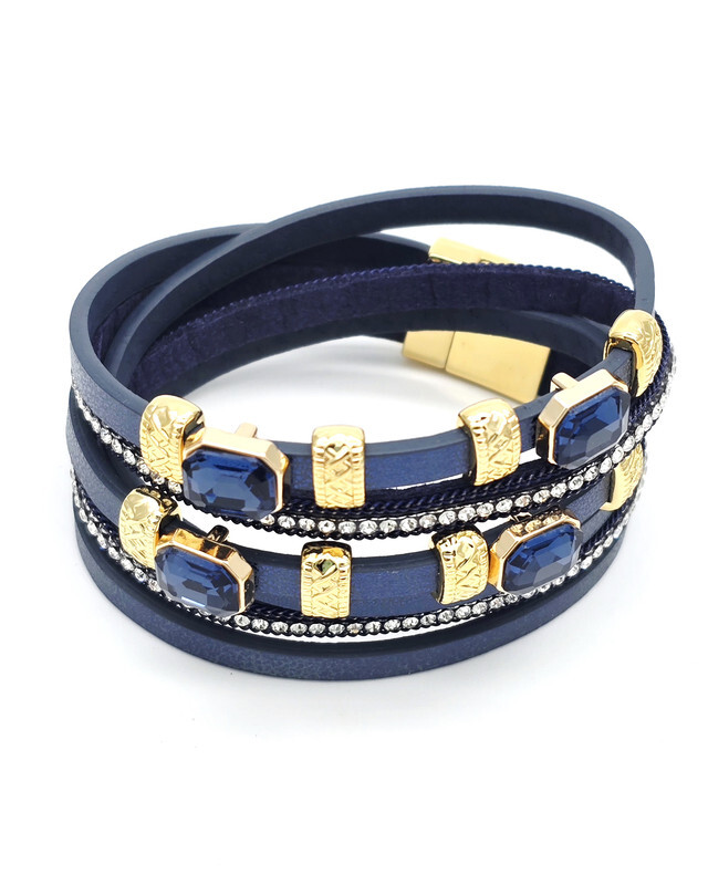 Искусственная кожа, хрустальное стекло, ювелирный сплав. Гальваническое покрытие: золото.