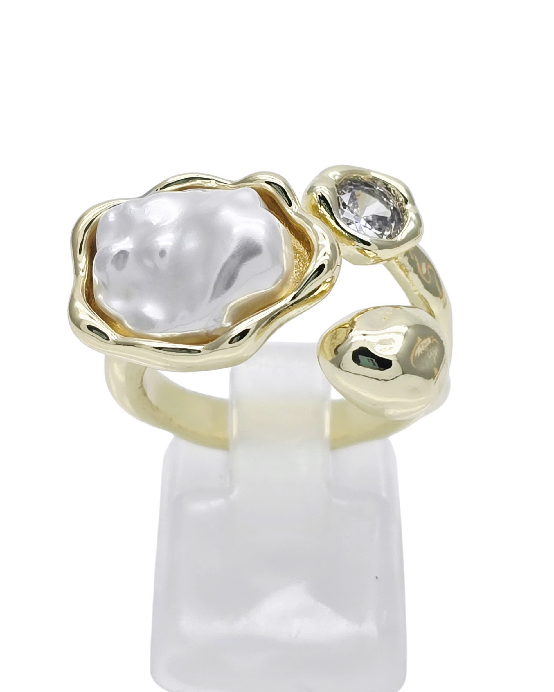 Цирконы, Жемчуг Майорка, ювелирный сплав. Гальваническое покрытие: золото.