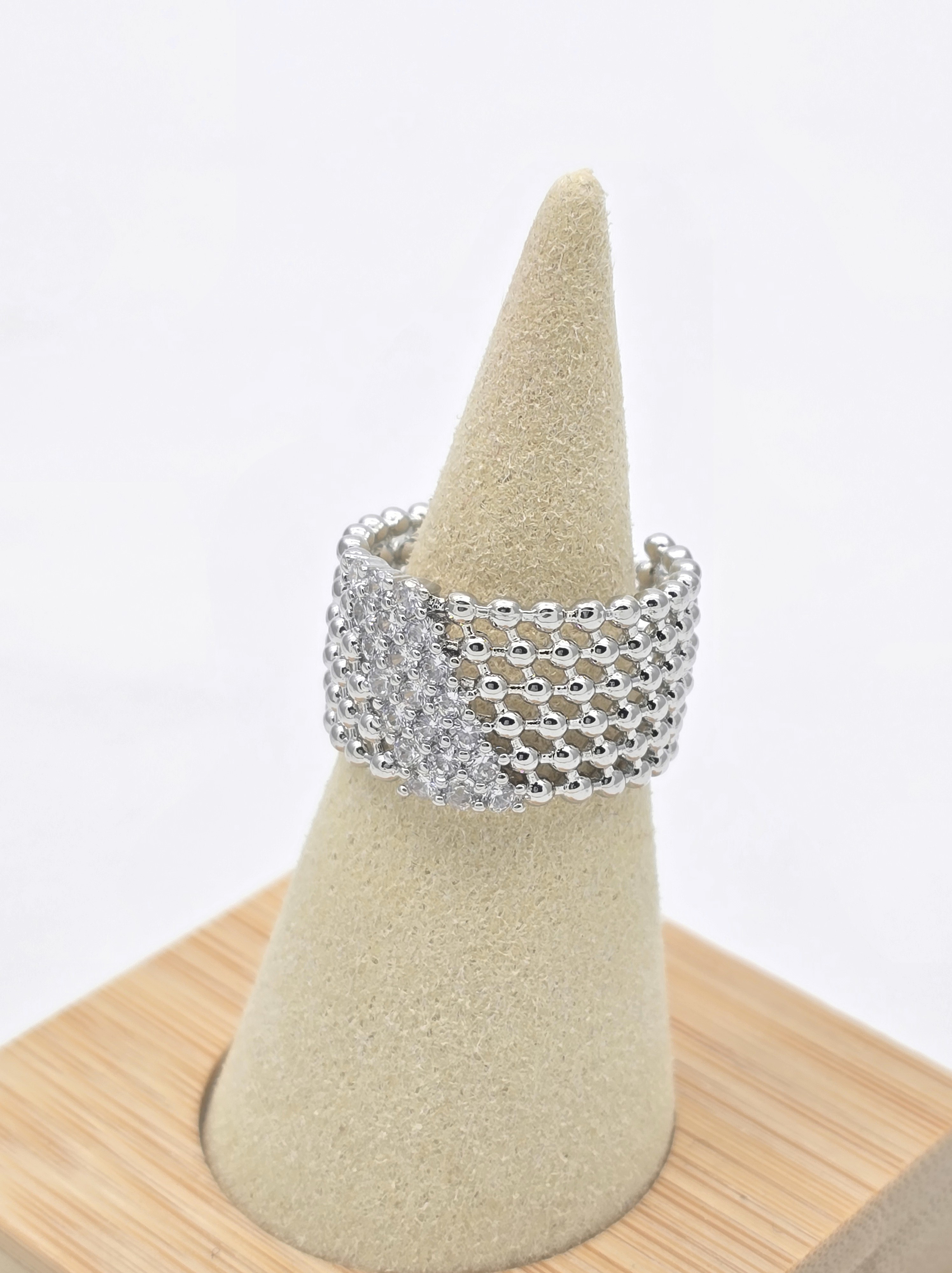 Размер кольца регулируется, ширина 1,3 см.