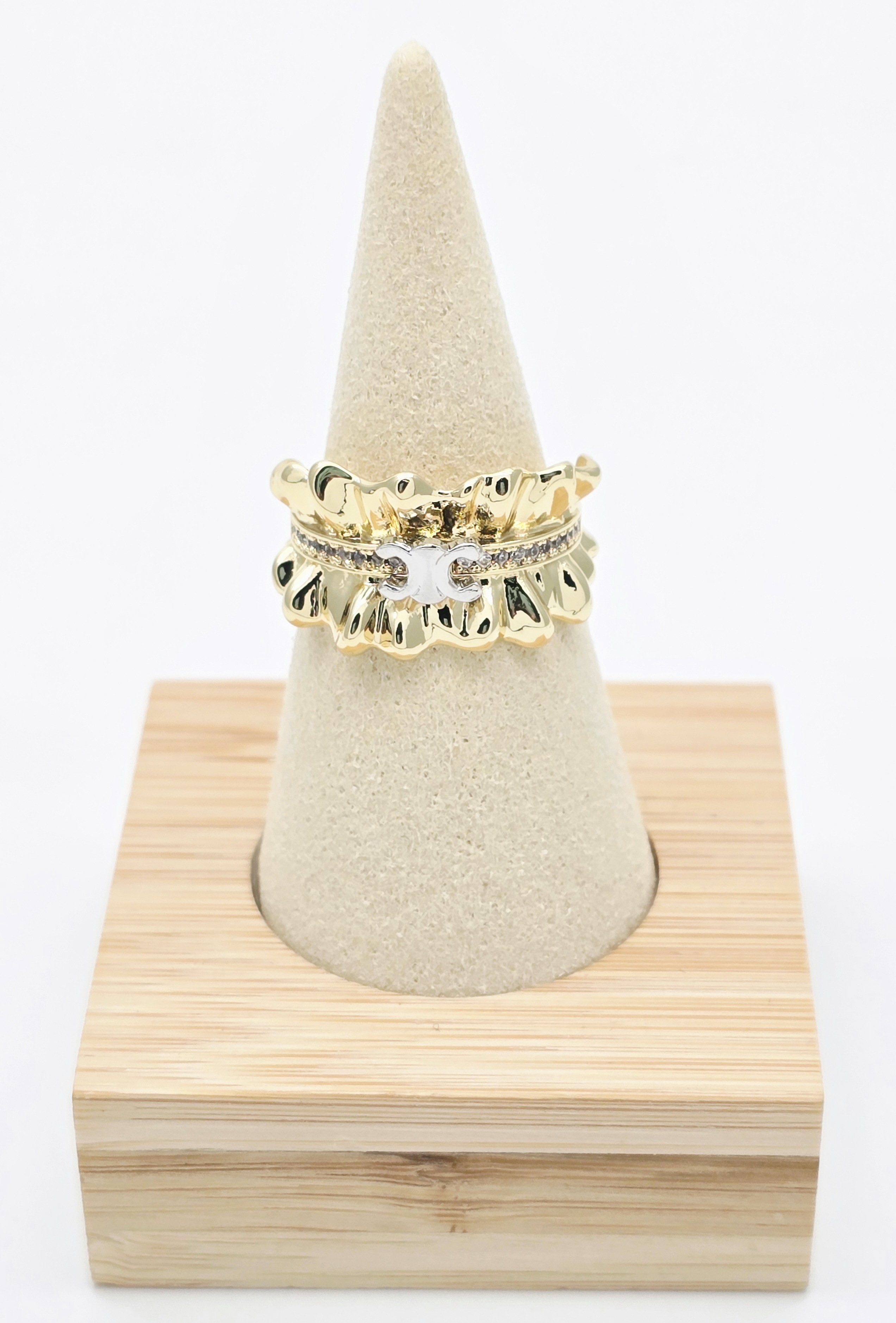 Размер кольца регулируется, ширина 1,5 см.
