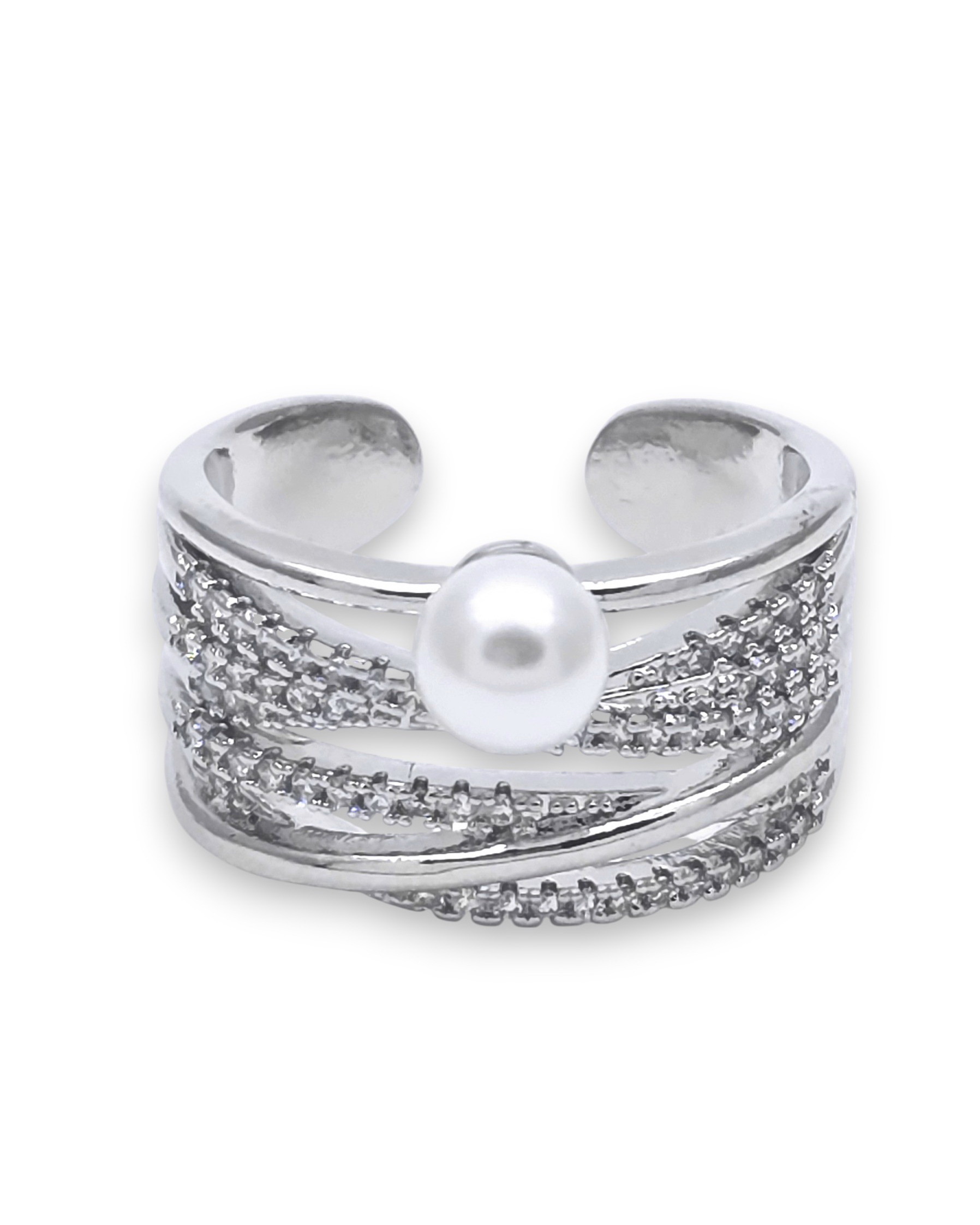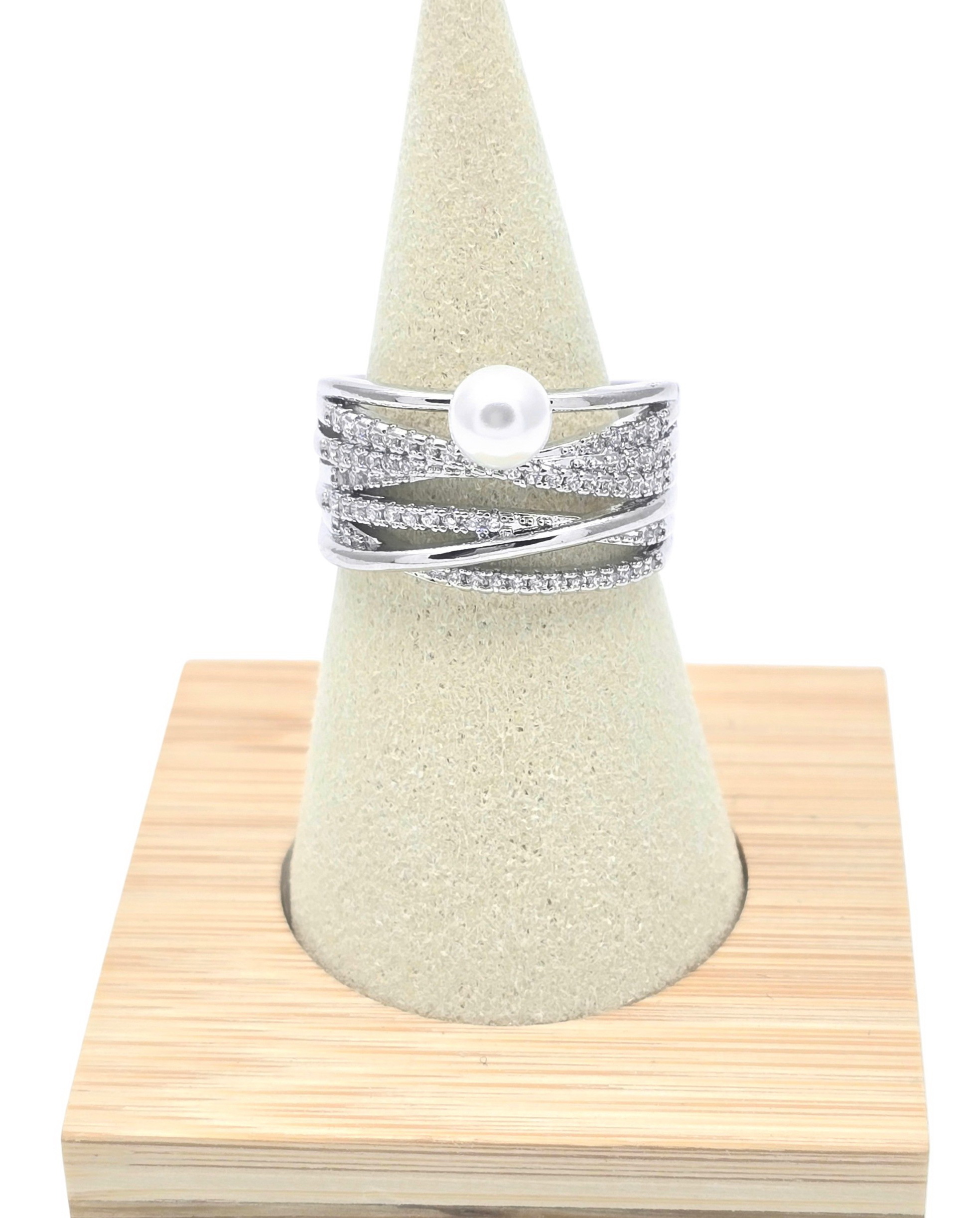 Цирконы, жемчуг Майорка, ювелирный сплав. Гальваническое покрытие: родий.