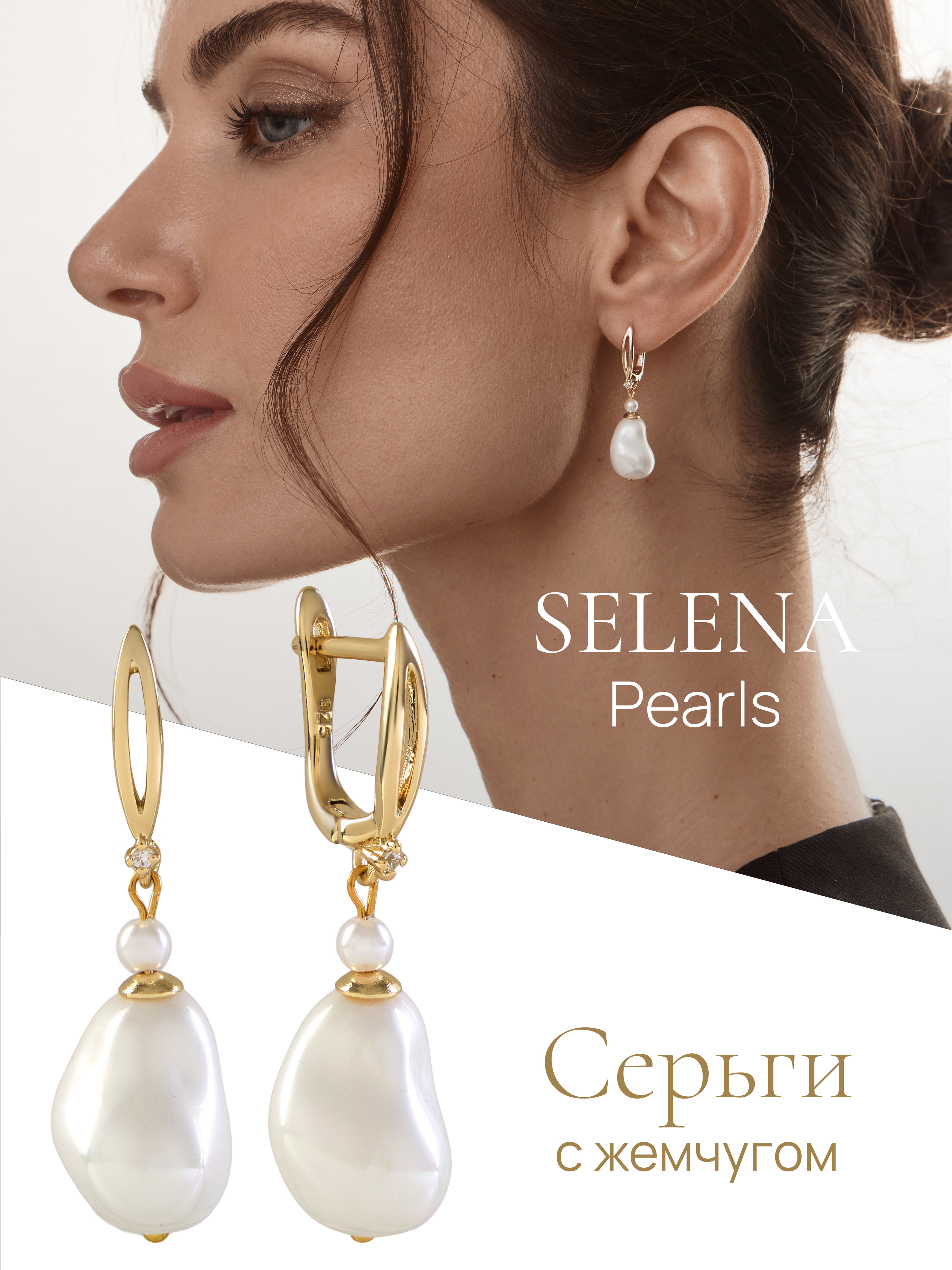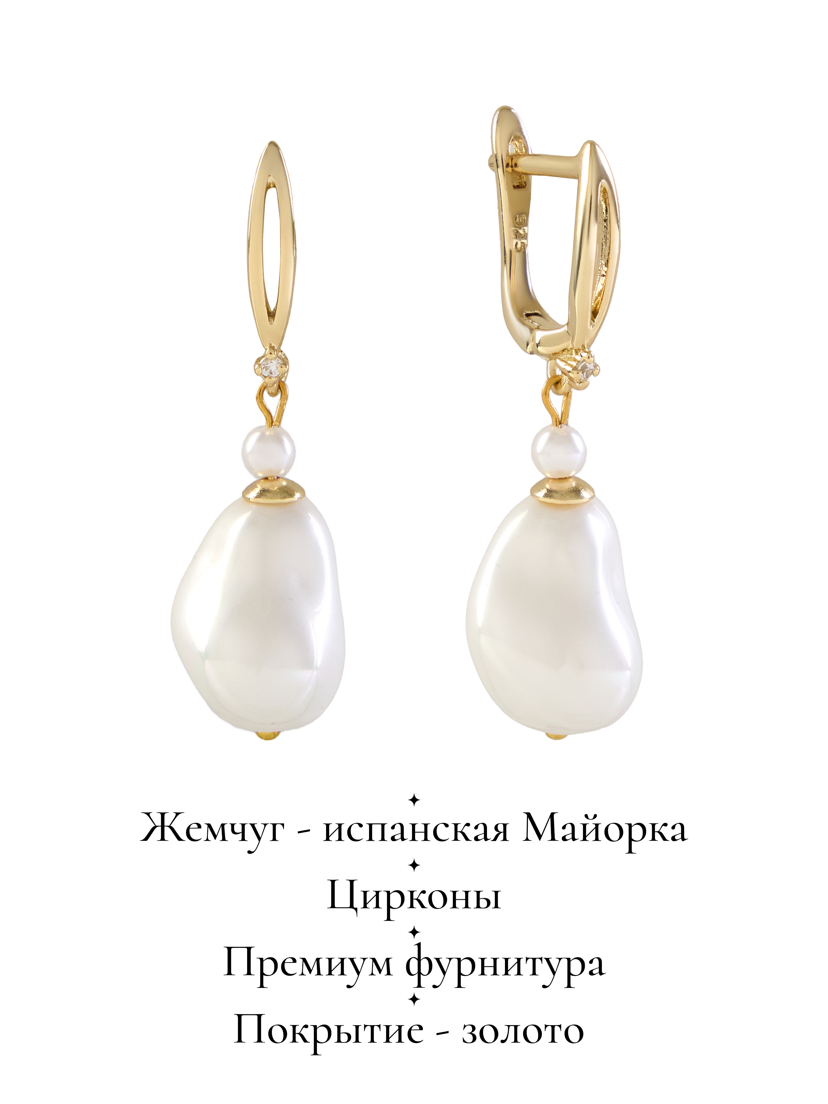 Длина серег 3,5 см. Жемчуг Майорка 11*14 мм.