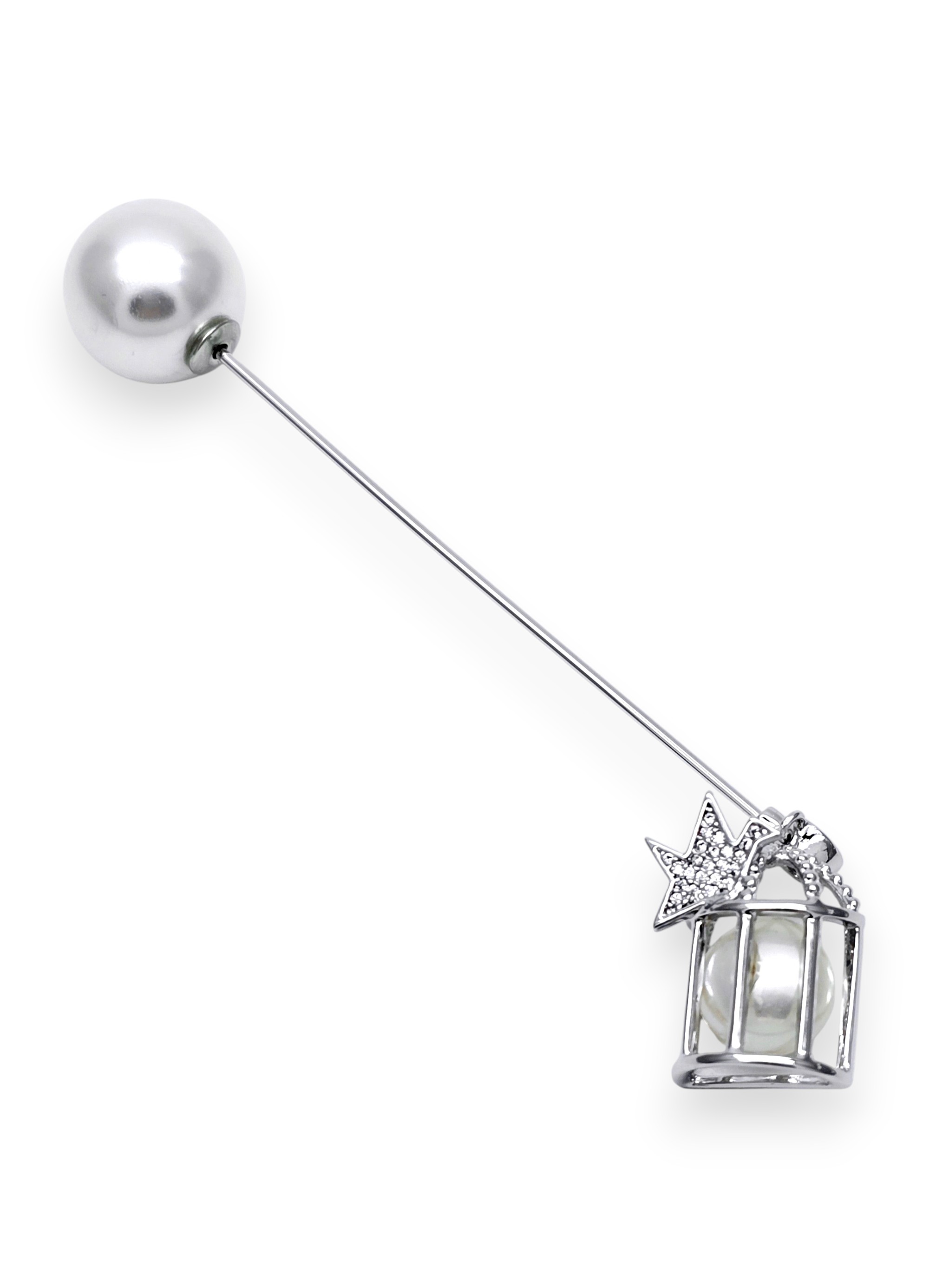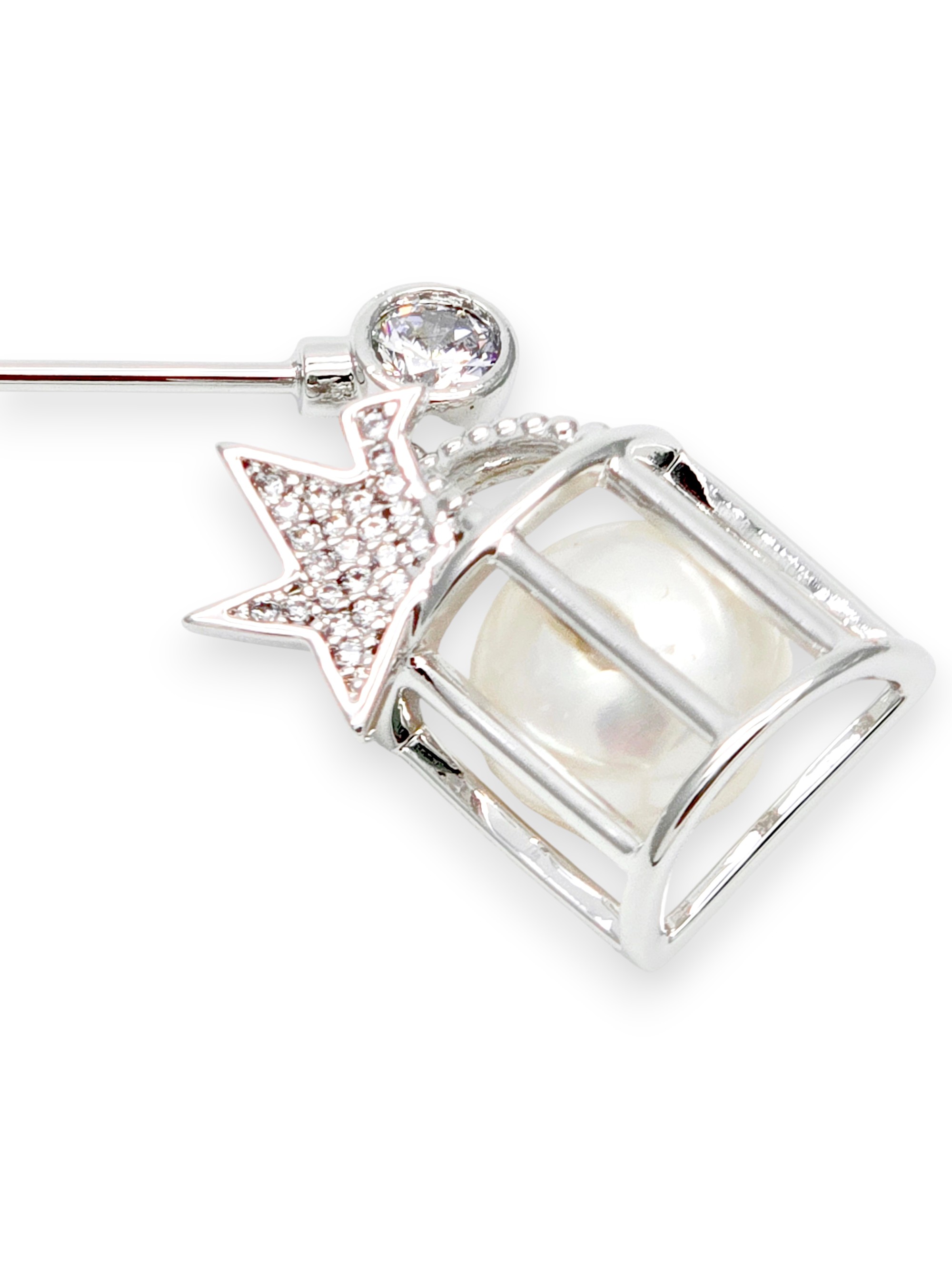 Цирконы, жемчуг натуральный, ювелирный сплав. Гальваническое покрытие: родий