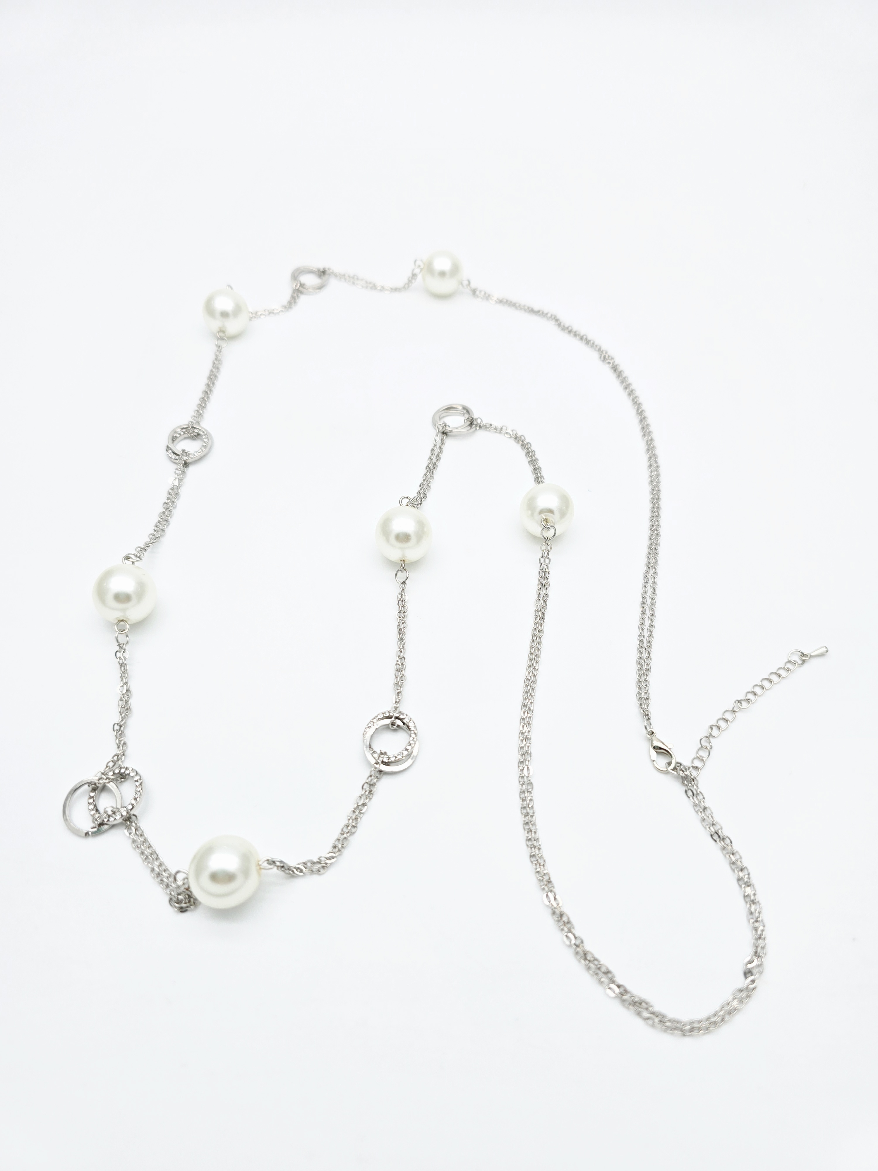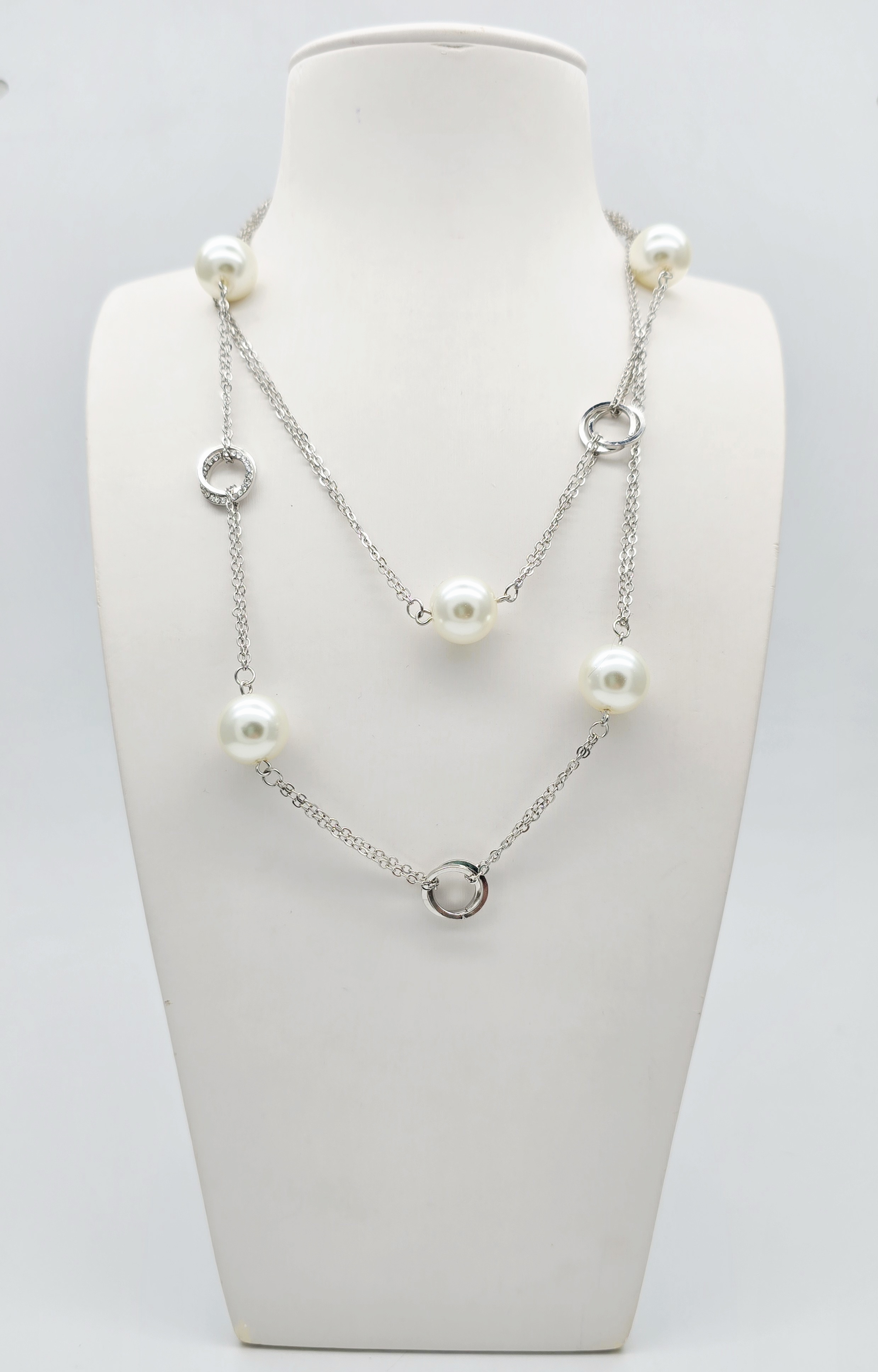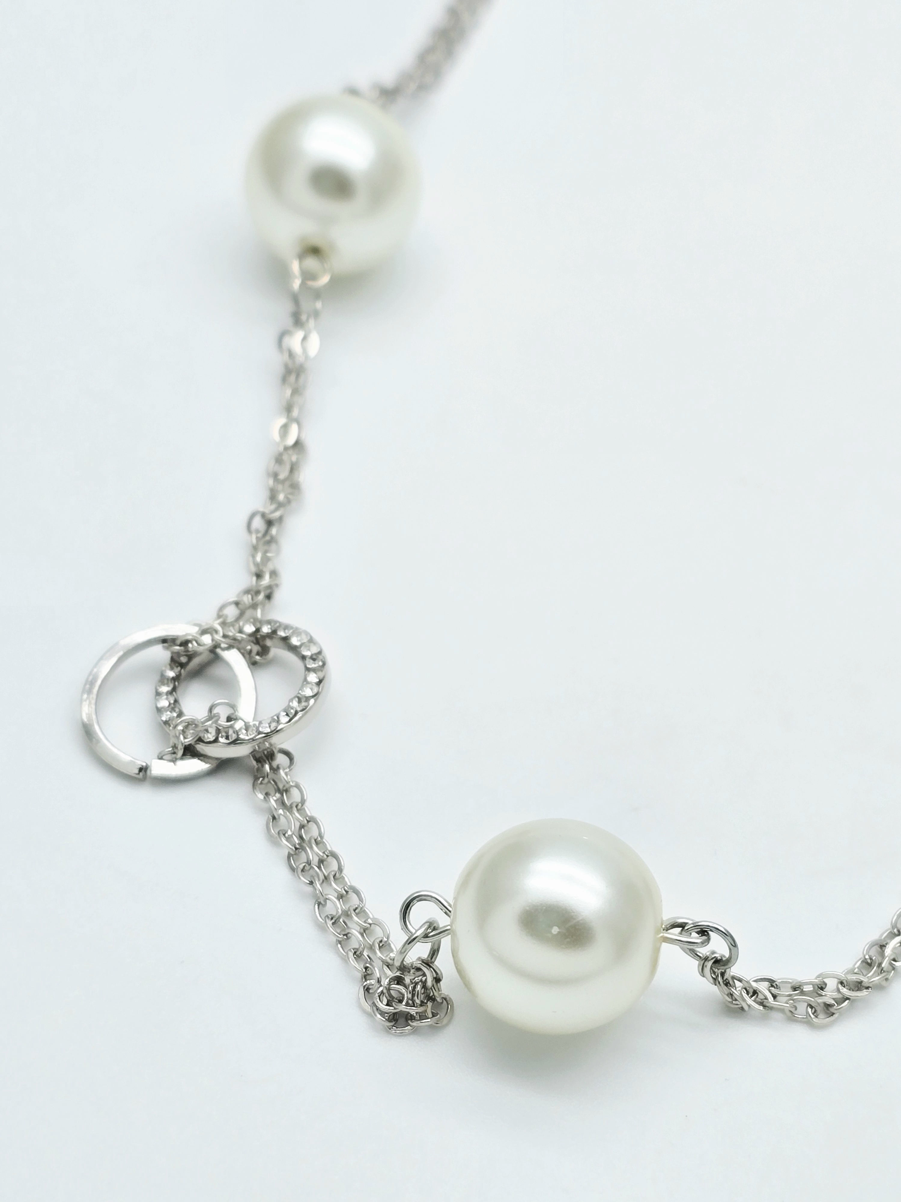 Жемчуг Майорка, стразы, ювелирный сплав. Гальваническое покрытие: родий.
