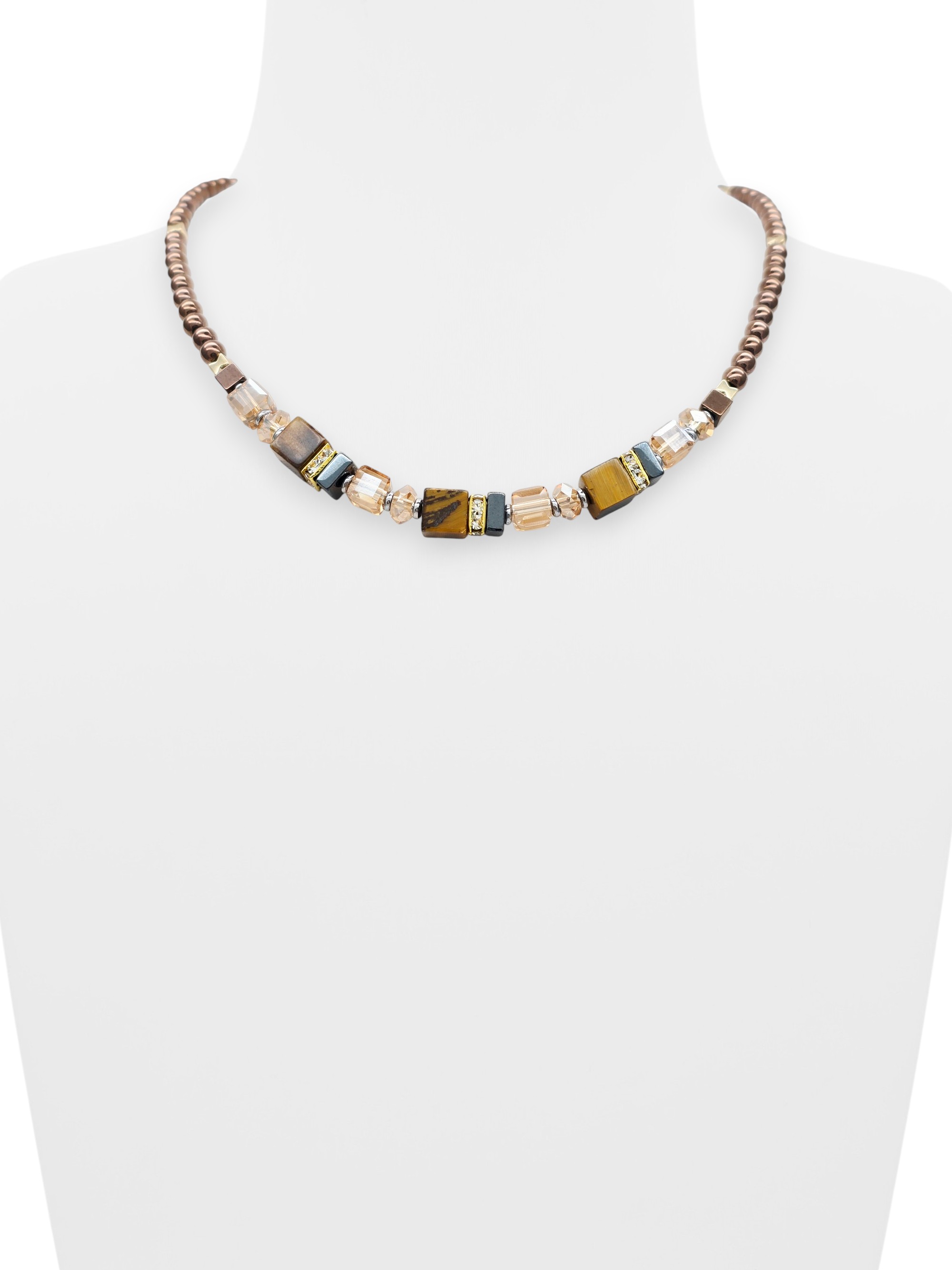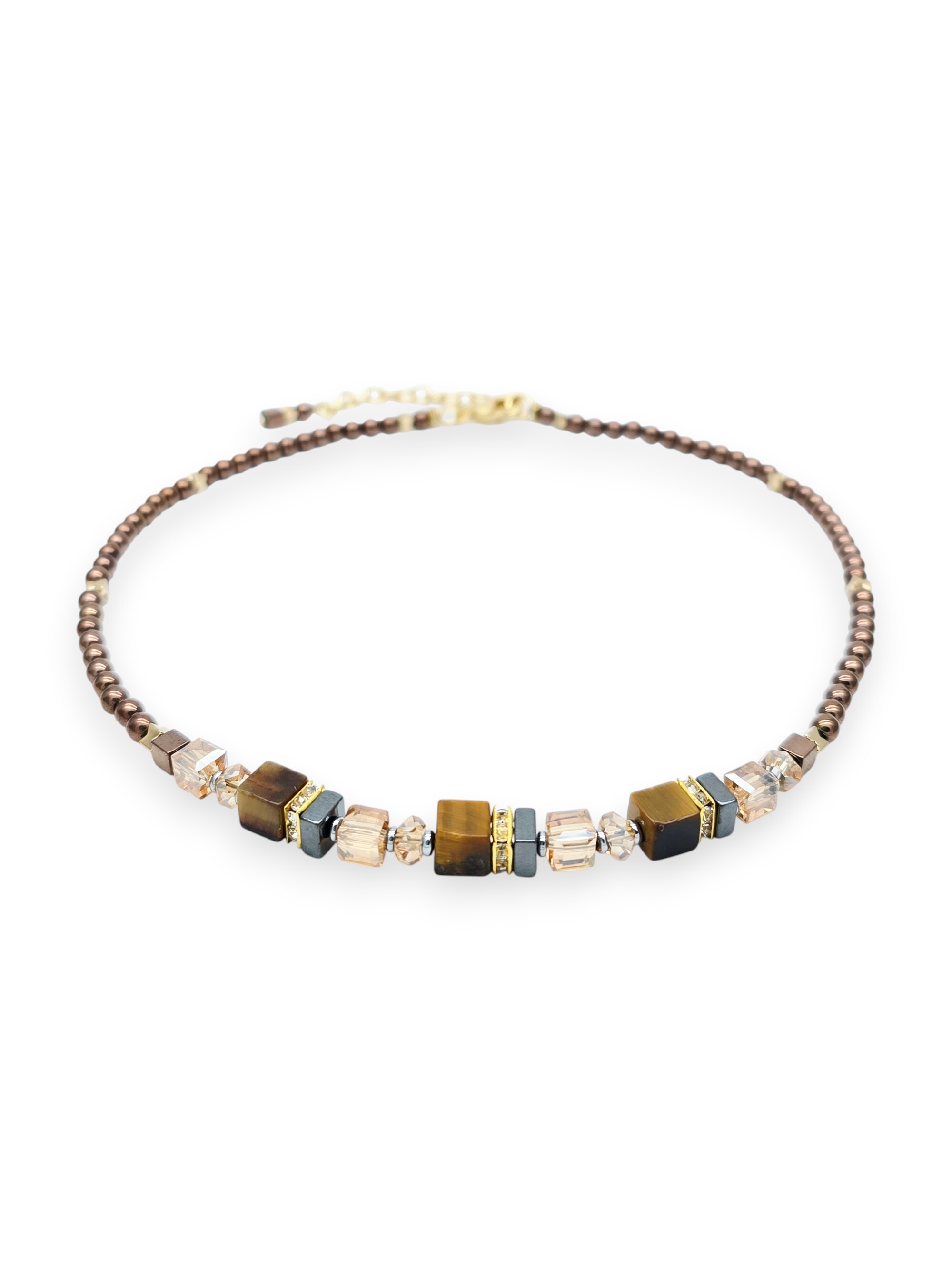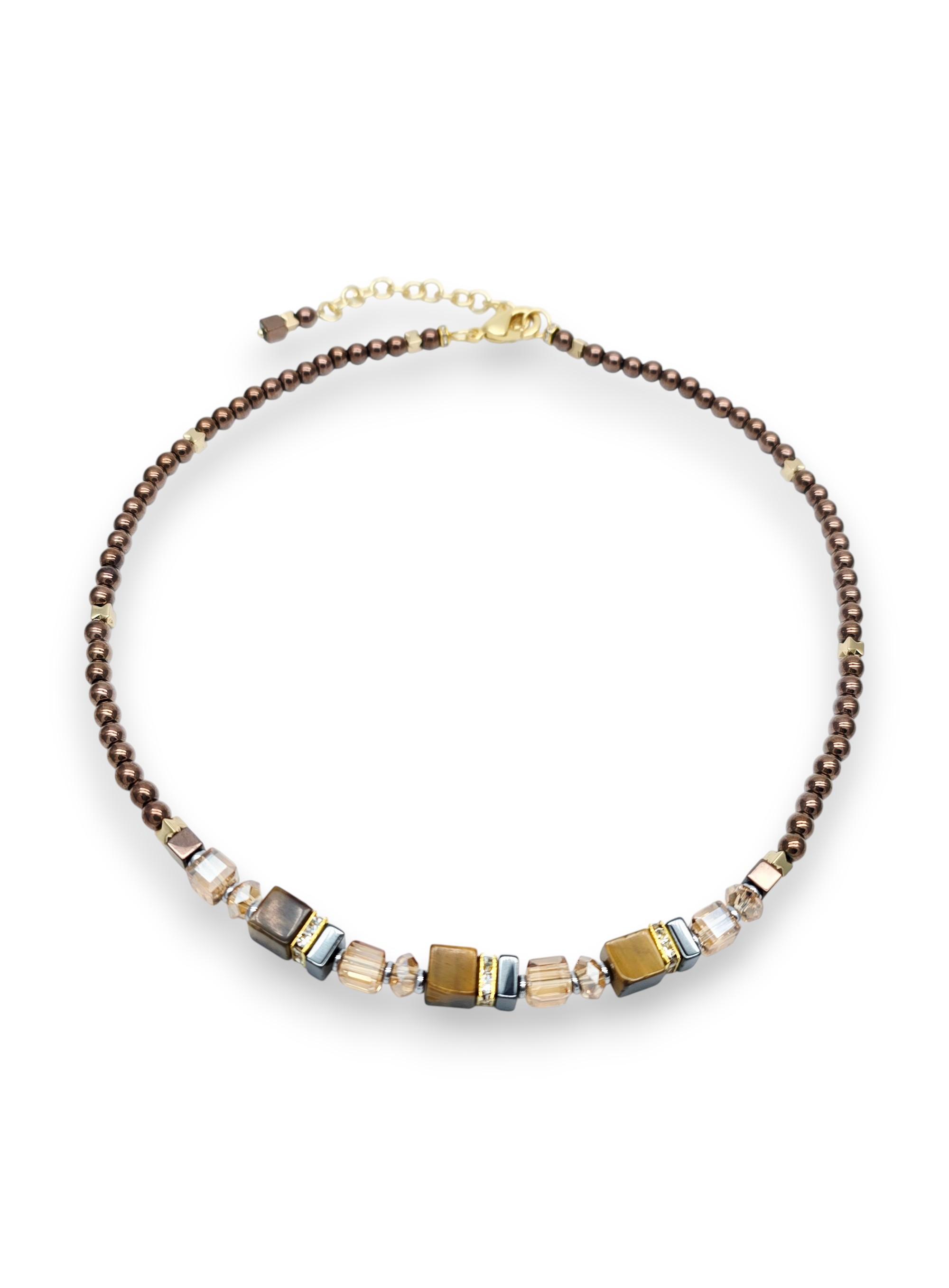Длина колье 40 - 45 см. Гематит 4 мм, тигровый глаз кубик 6 мм.