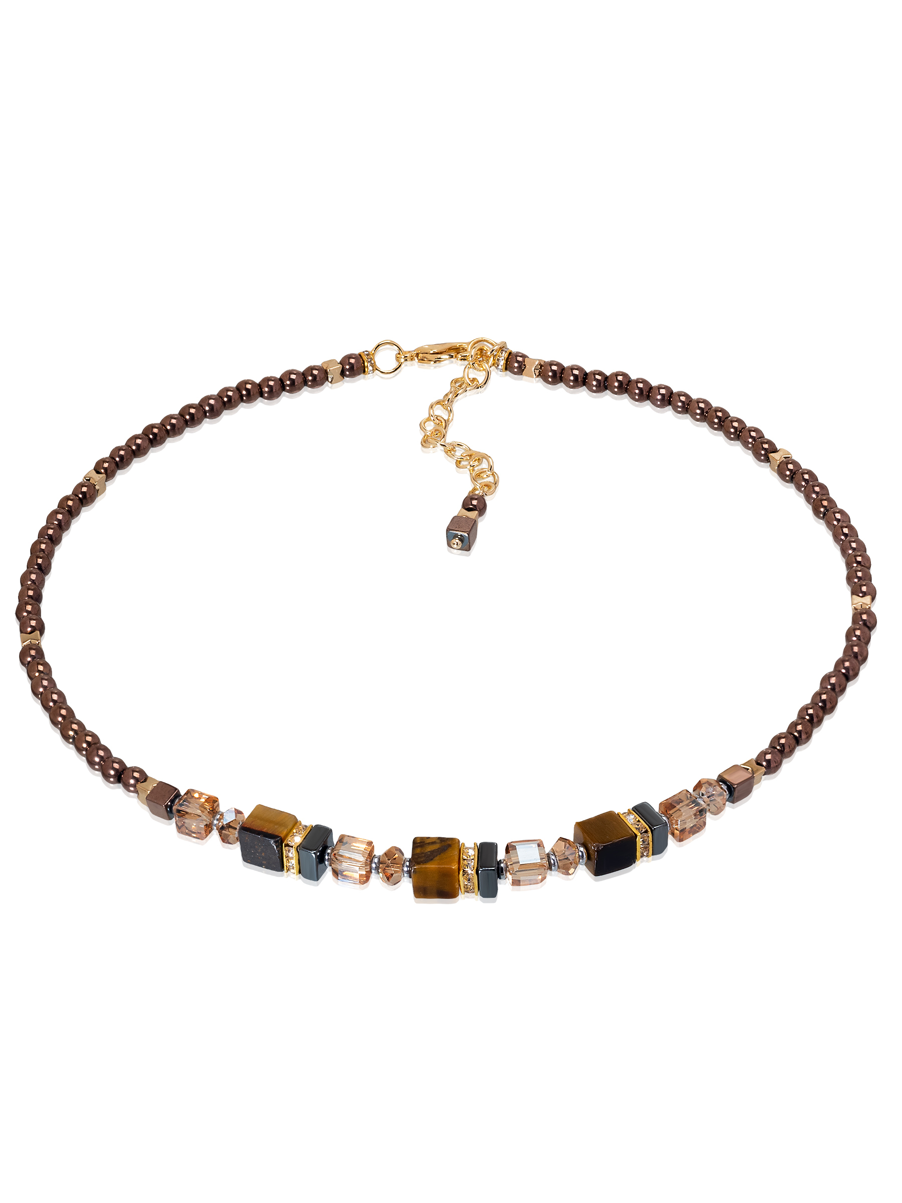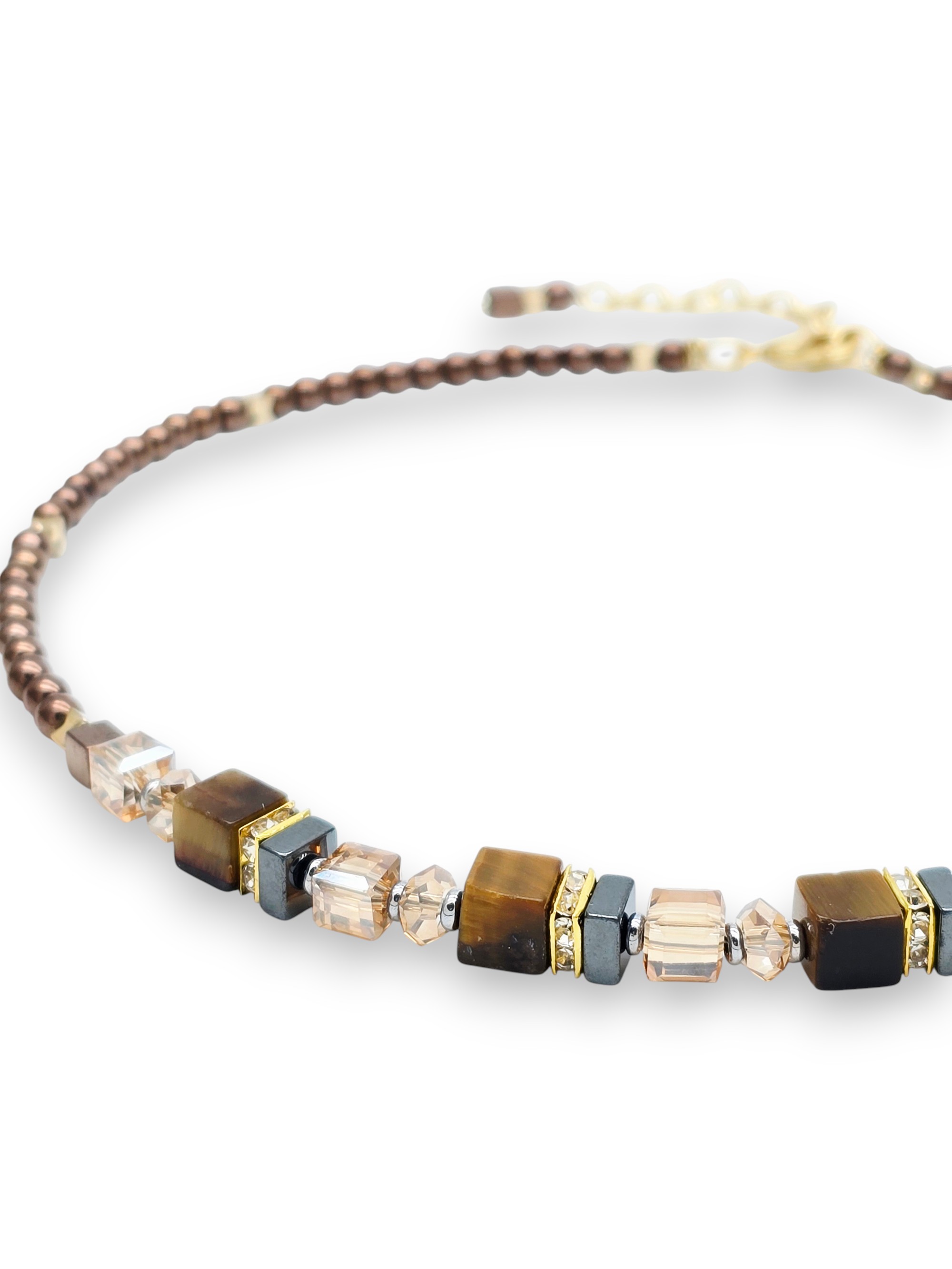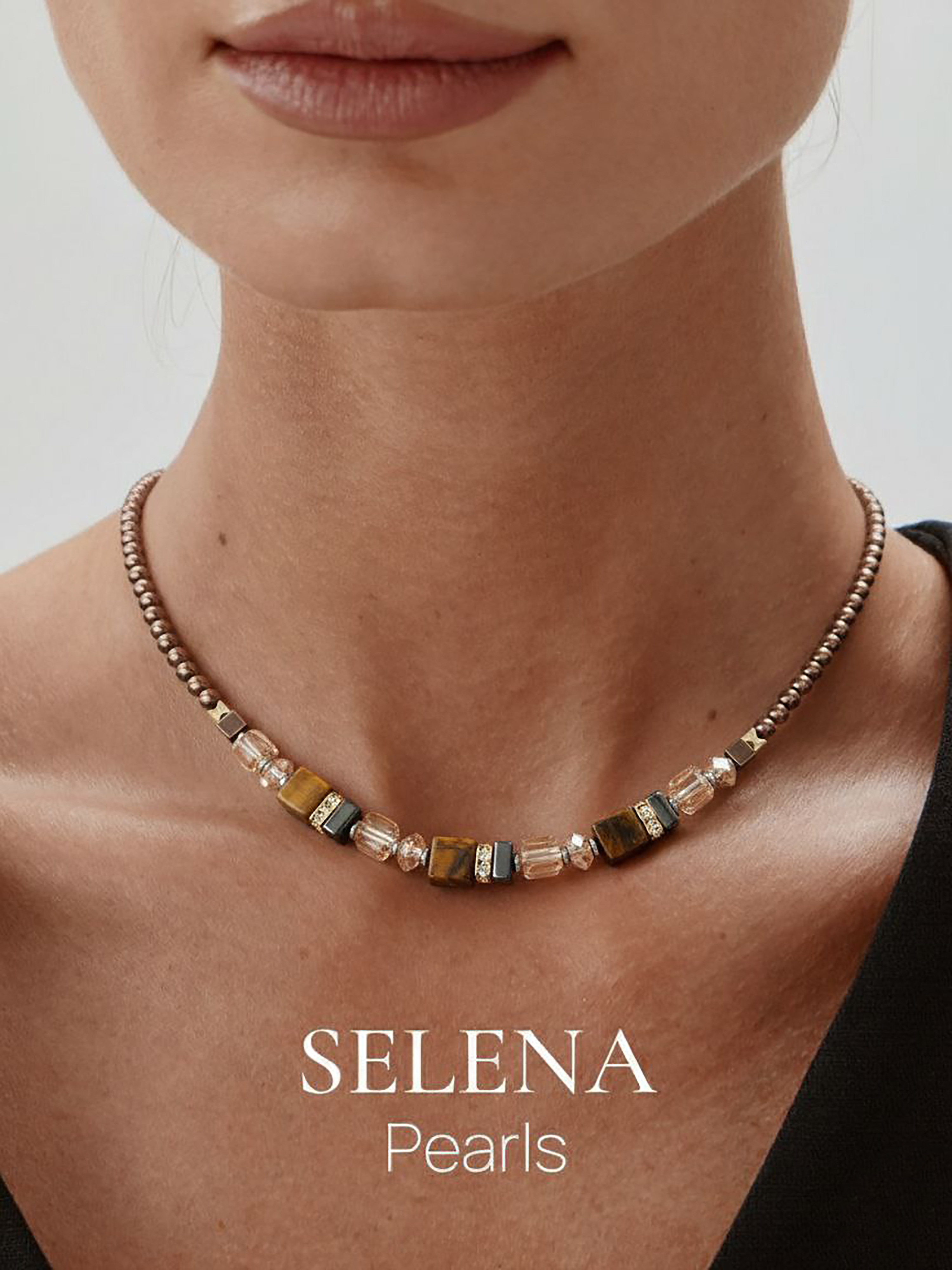 Длина колье 40 - 45 см. Гематит 4 мм, тигровый глаз кубик 6 мм.