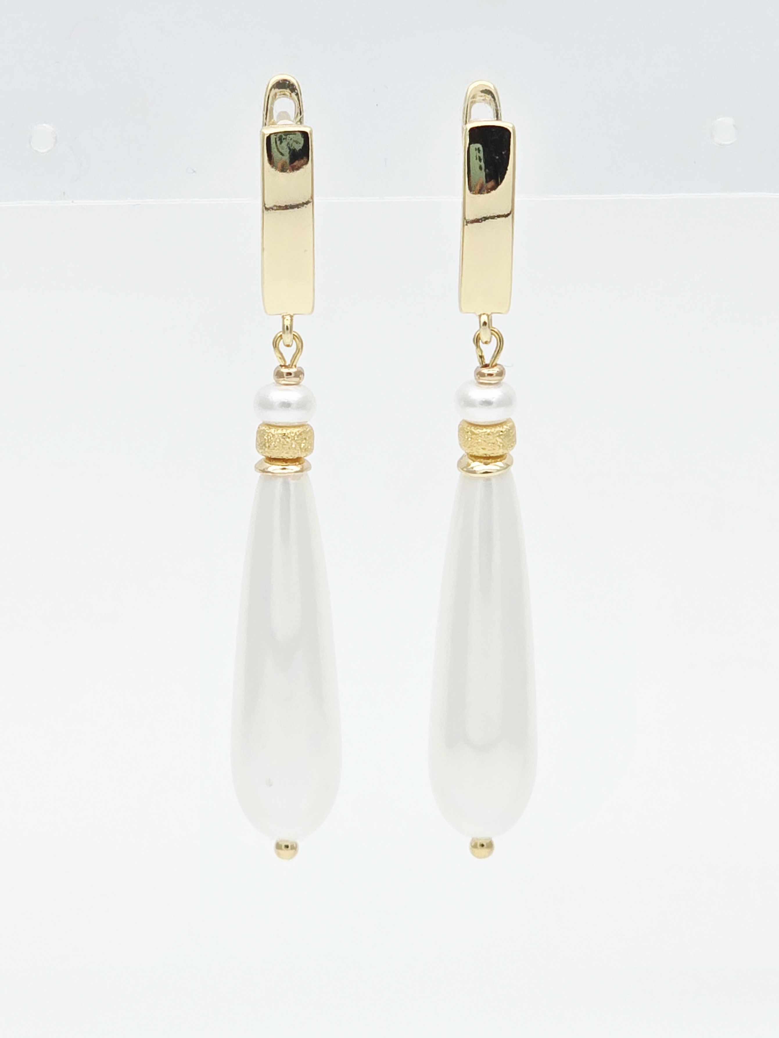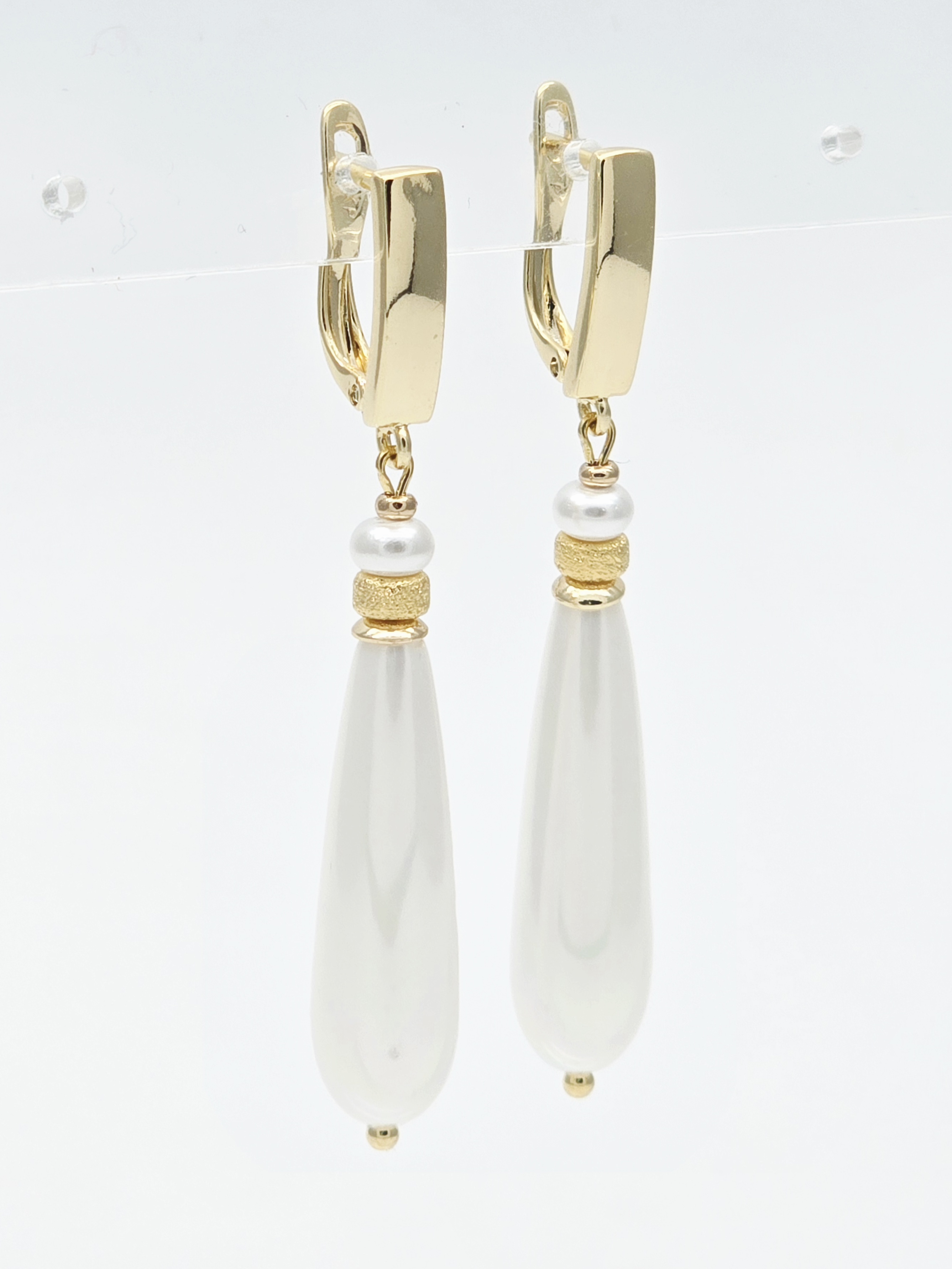Длина серег с учетом швенз 5,3 см. Жемчуг Майорка 8*28 мм, 6 мм.