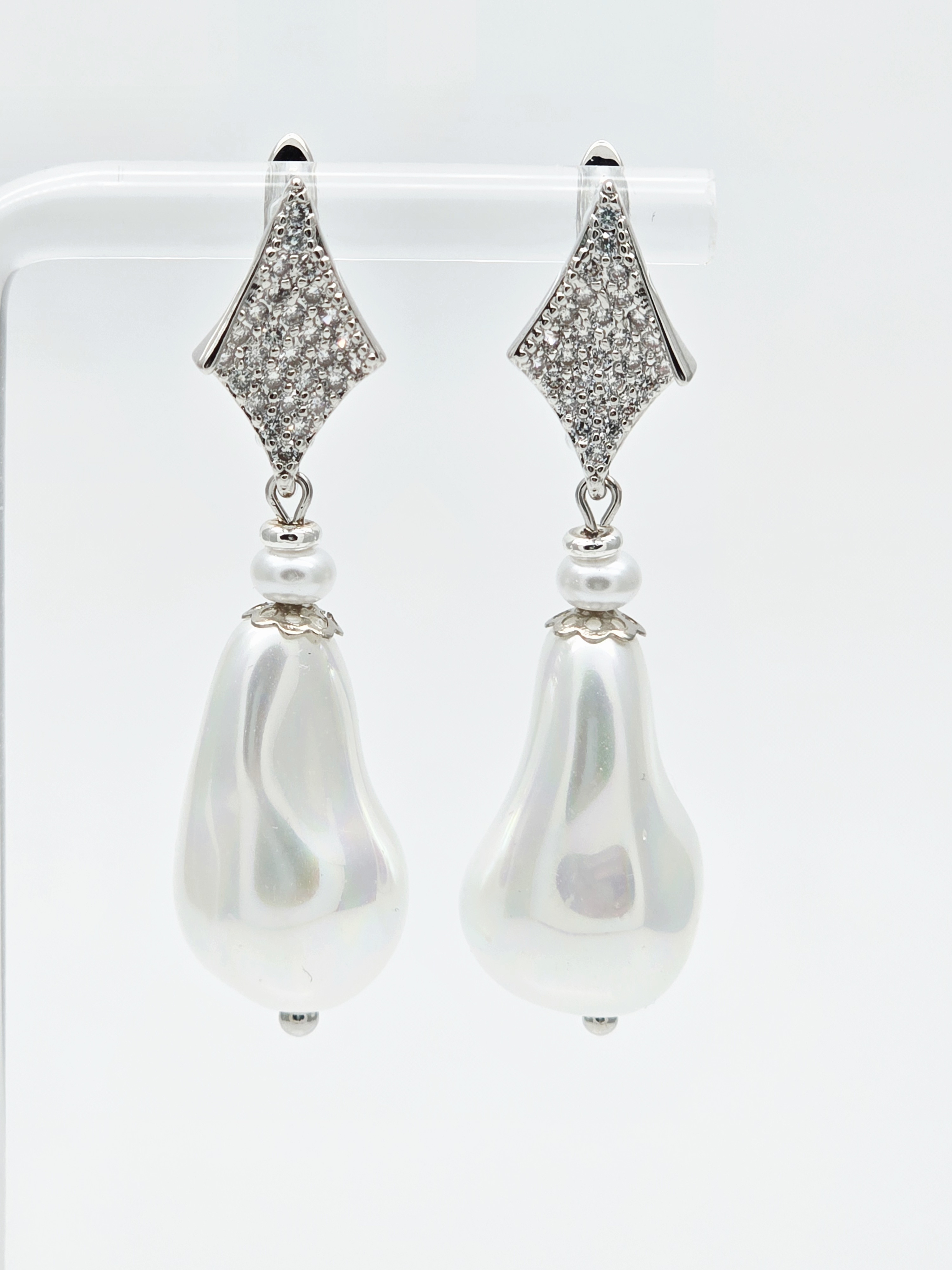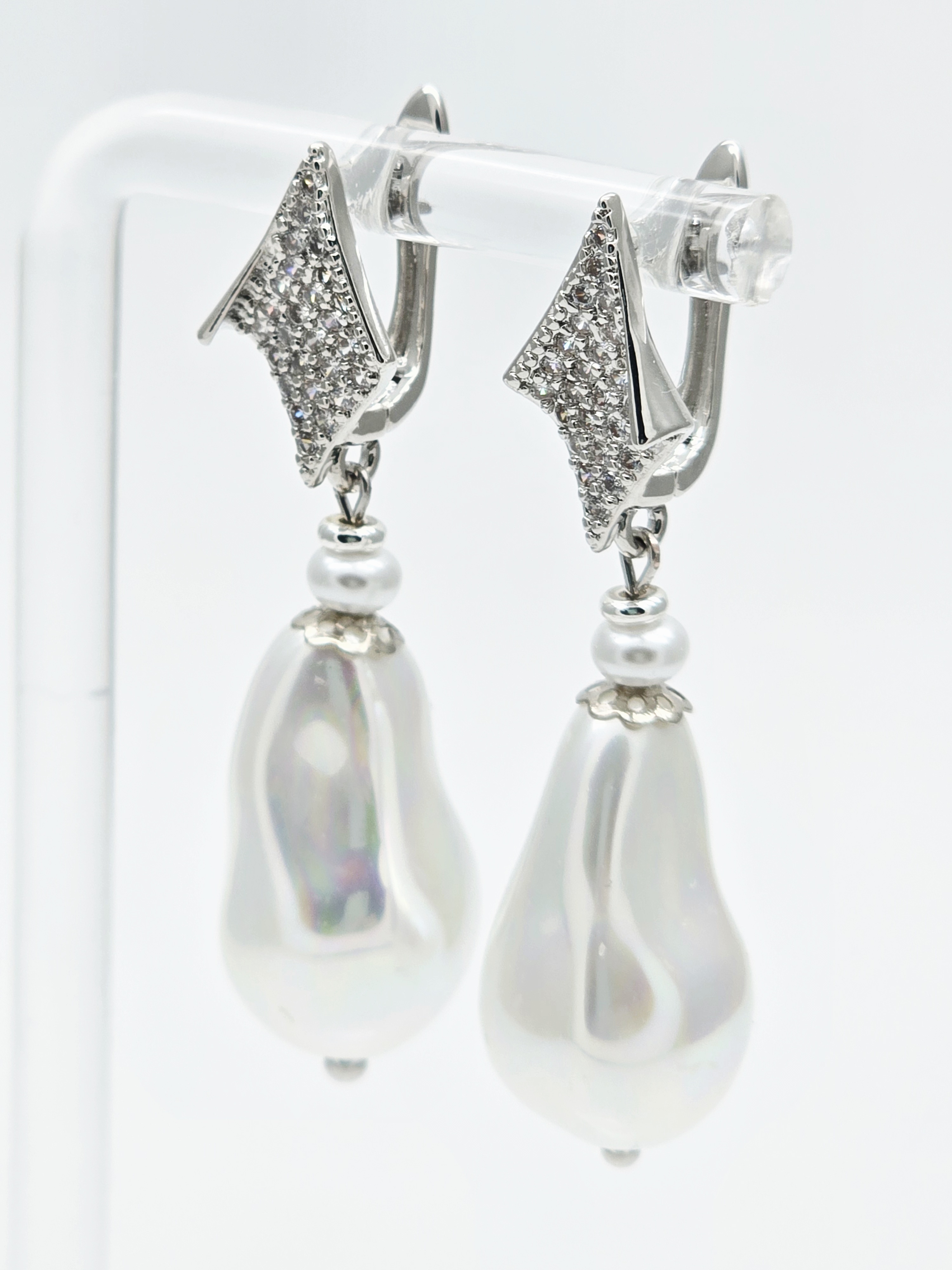 Длина серег с учетом швенз 4,5 см. жемчуг Майорка барочный 12*20 мм.