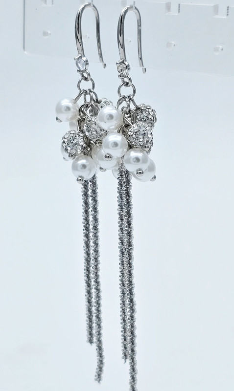 Жемчуг Майорка, кристаллы Preciosa, ювелирный сплав. Гальваническое покрытие: родий.