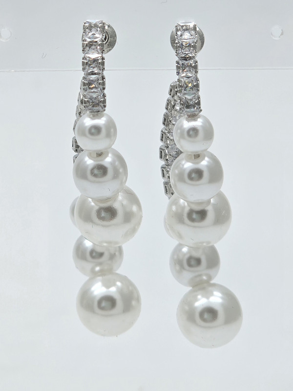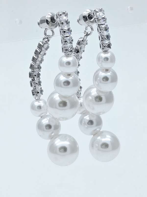 Жемчуг Майорка, цирконы, ювелирный сплав. Гальваническое покрытие: родий.